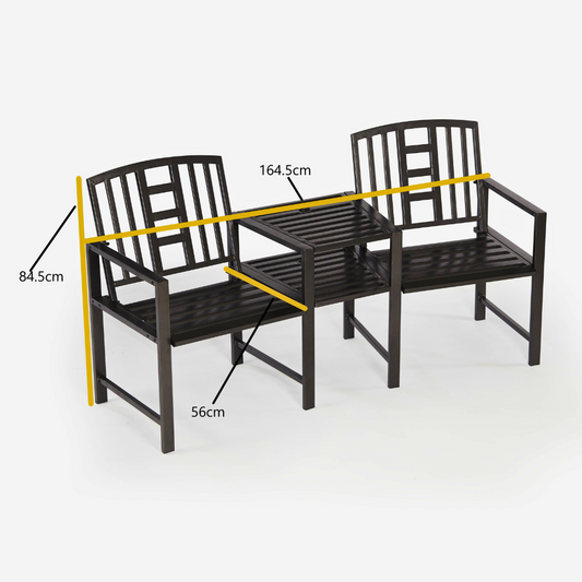 Hartlebury Rustic Bronze Duo Garden Bench with Central Table