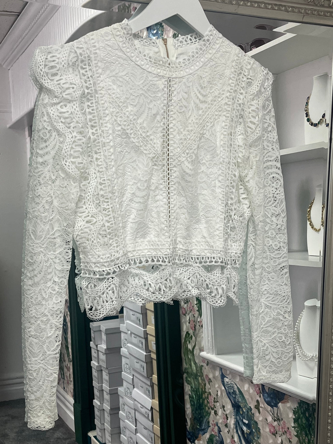 Luxtyle Cropped Long Sleeve Lace Top – One Size (Fits 8–14)