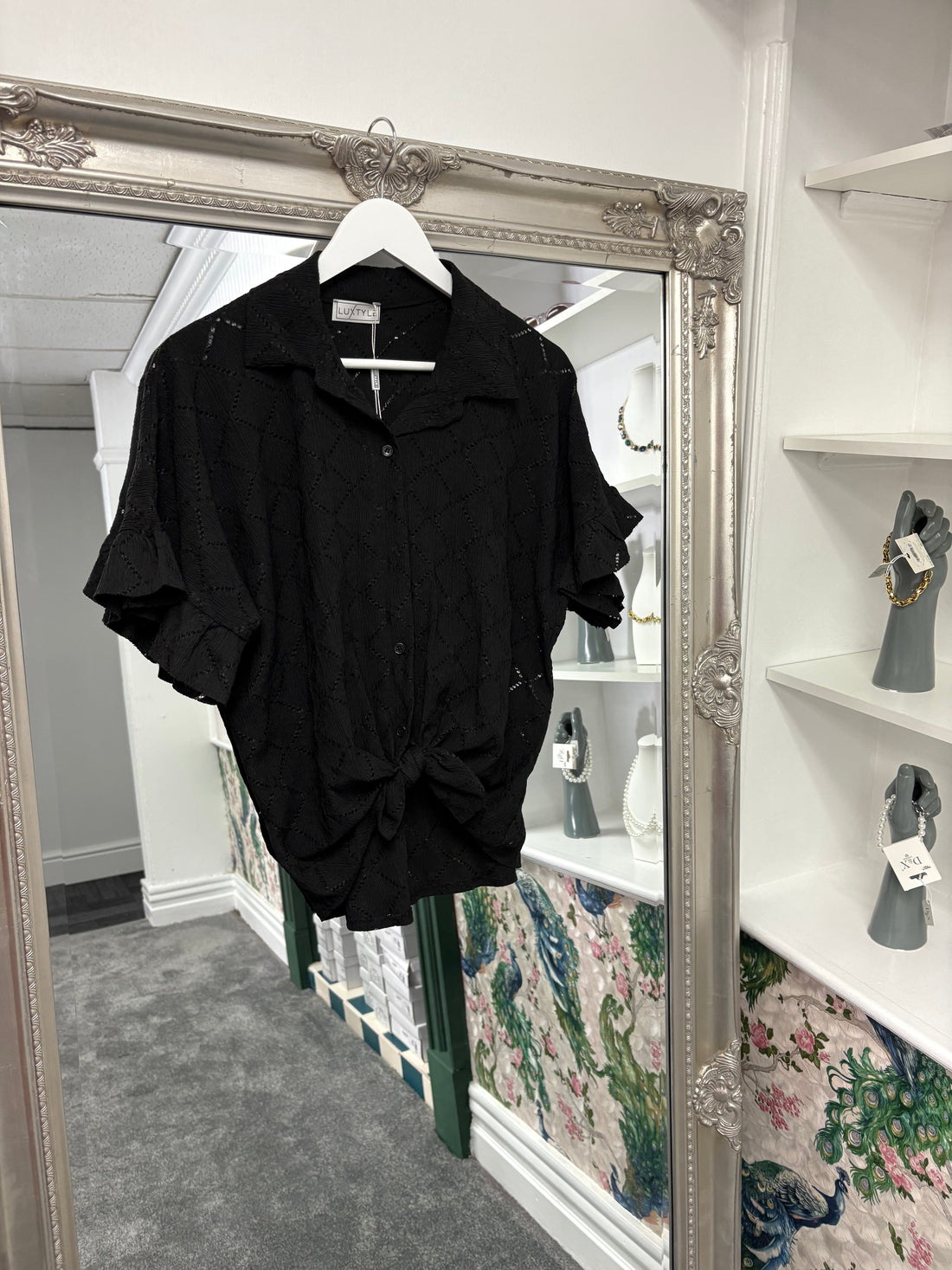 Black Front Tie Knot Waist Top – One Size Fits UK 8–16