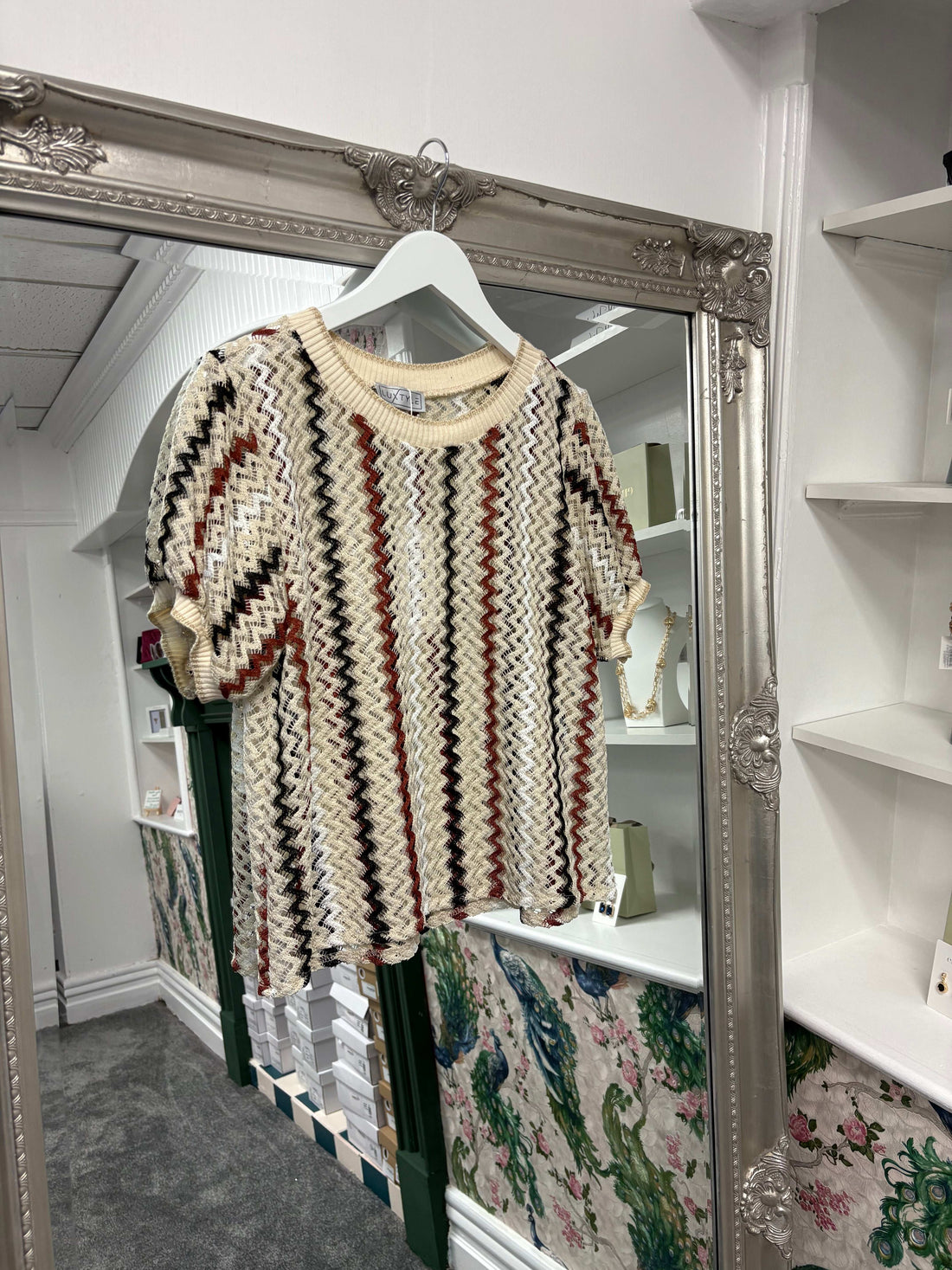 Luxtyle Zig Zag Knit Top | Striped Short Sleeve Blouse | One Size Fits 8–14