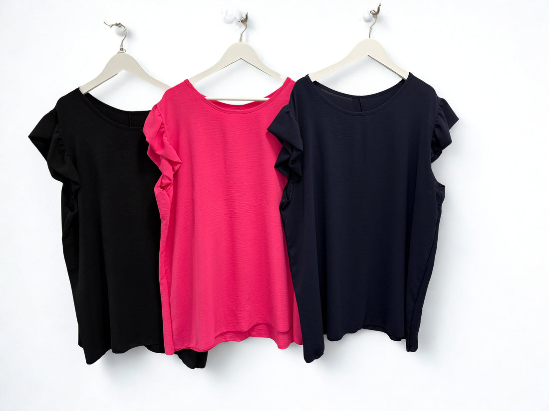 Frill Cap Sleeve Top with Button Back – One Size (Fits 8–22)