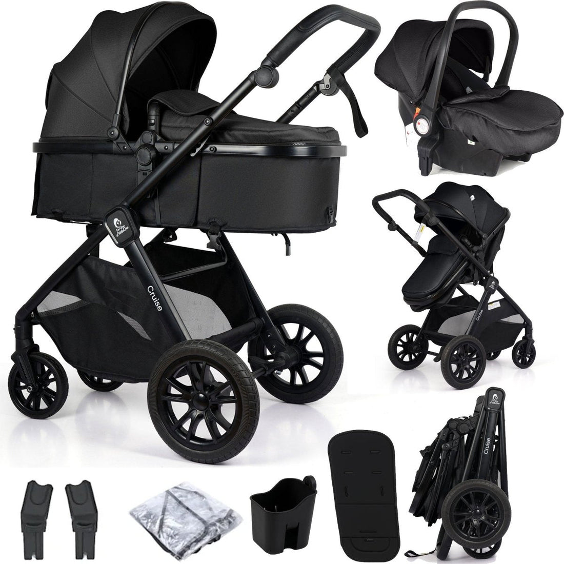 For Your Little One Cruise 3 In 1 Travel System With i-Size Car Seat - Eclipse Black (Free Cupholder / Seat Liner Included!)