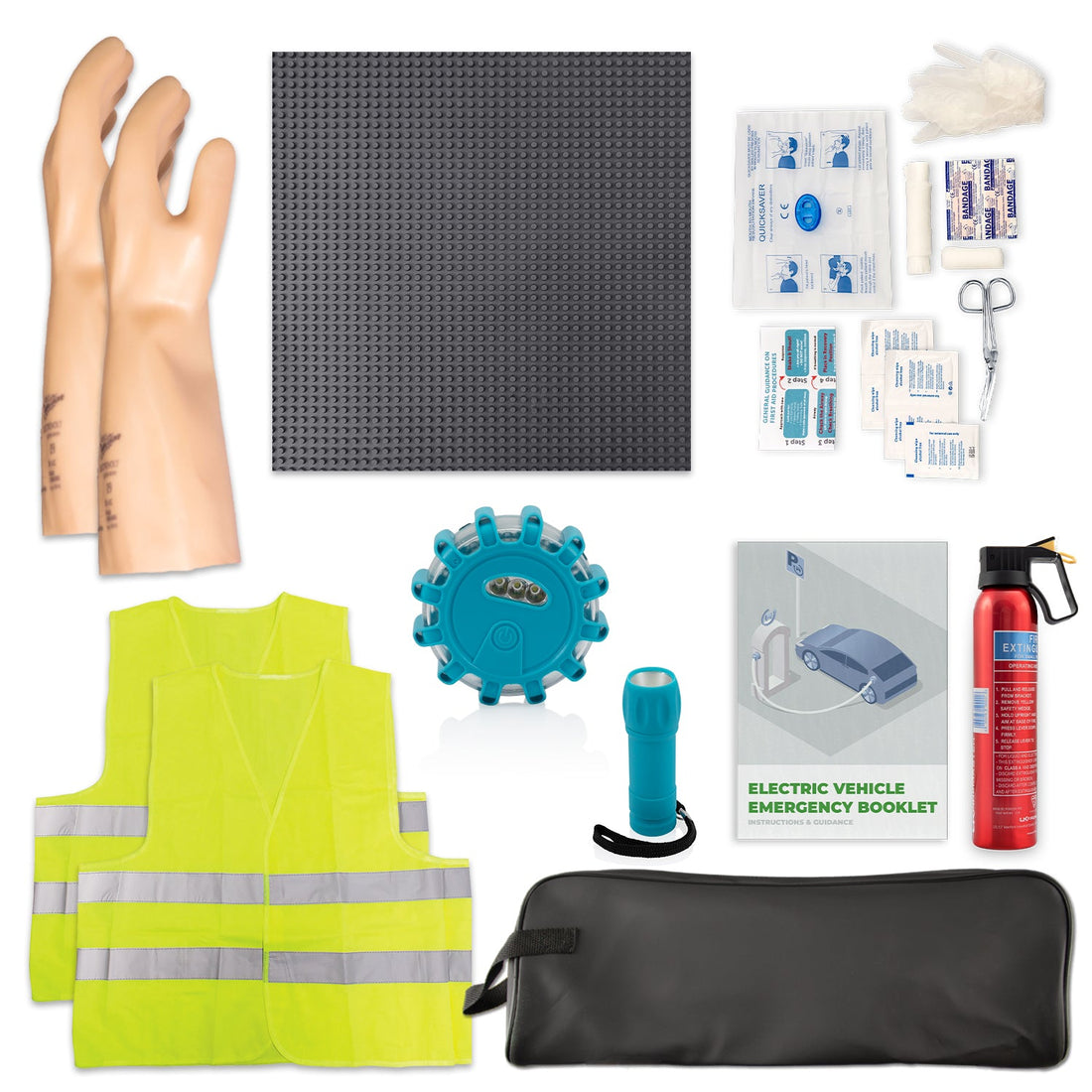 Complete pack designed for use with electrical vehicles and emergencies that may be faced at...