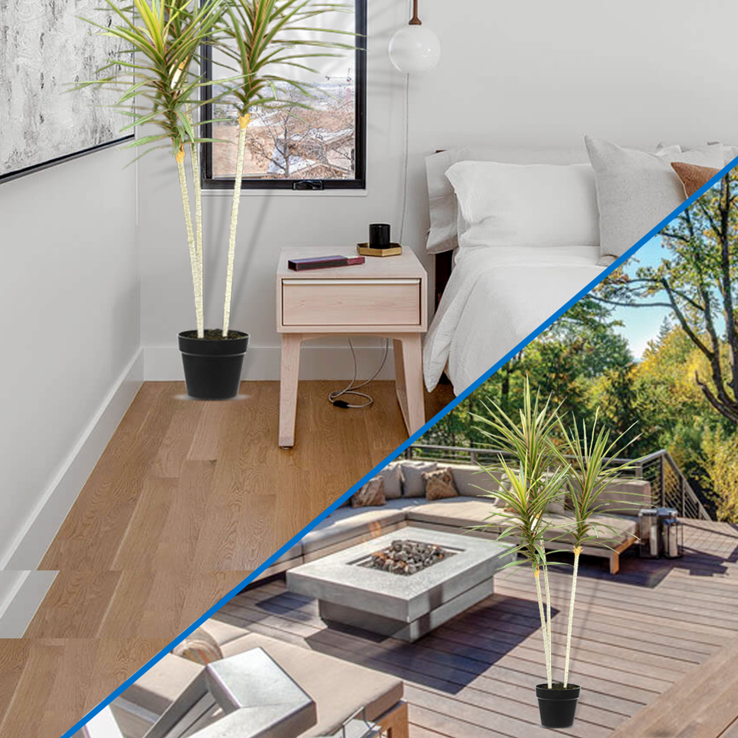 Year-Round Exotic Beauty: Unlike live trees that may require specific conditions, this artificial Dragon Tree maintains its exotic allure throughout every season. It brings a touch of tranquility and elegance to your surroundings, no matter the time of year.