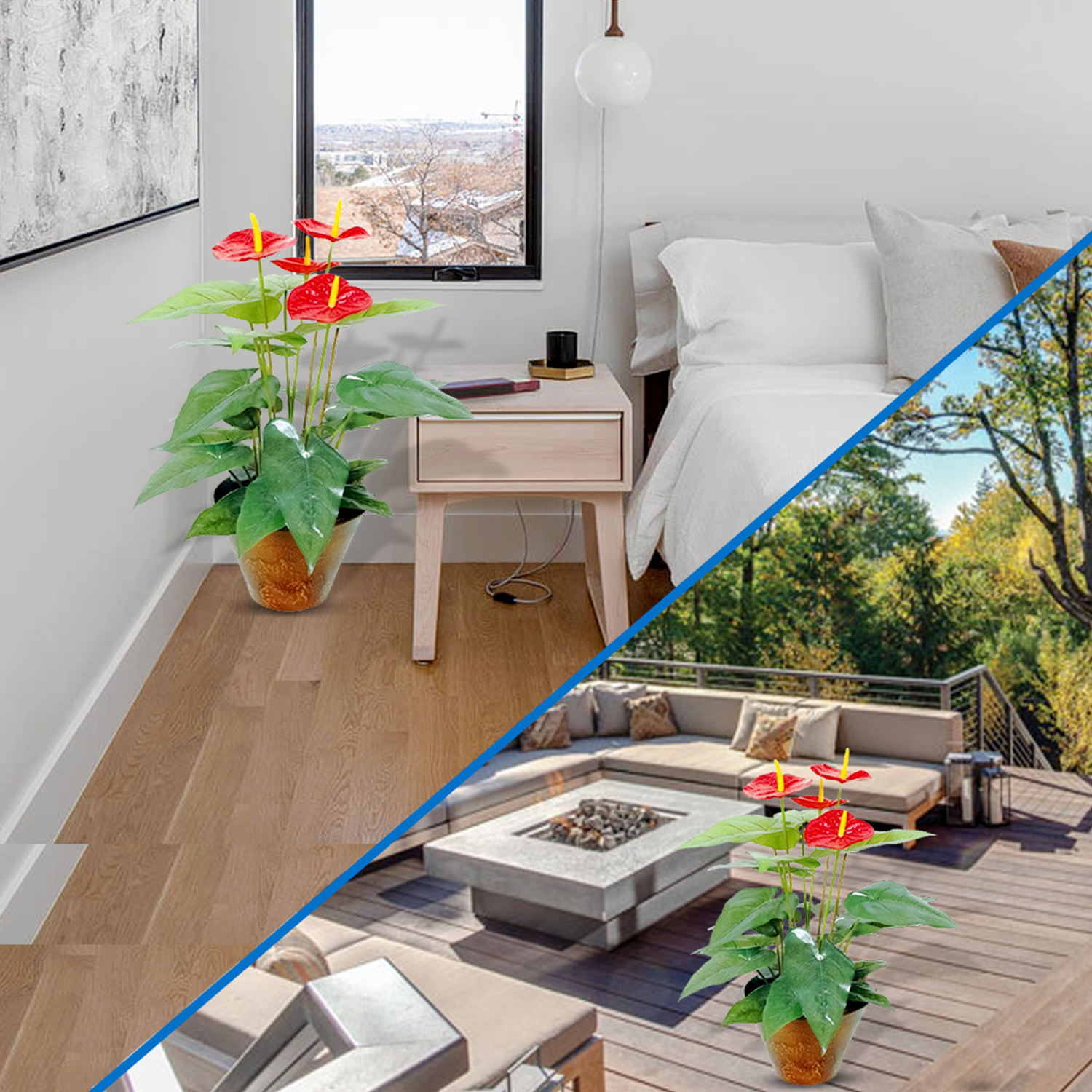 Low Maintenance: Enjoy the allure of flamingo lilies without the need for special care. This artificial plant remains vibrant and vibrant year-round, making it an ideal choice for those with busy schedules or limited gardening experience.