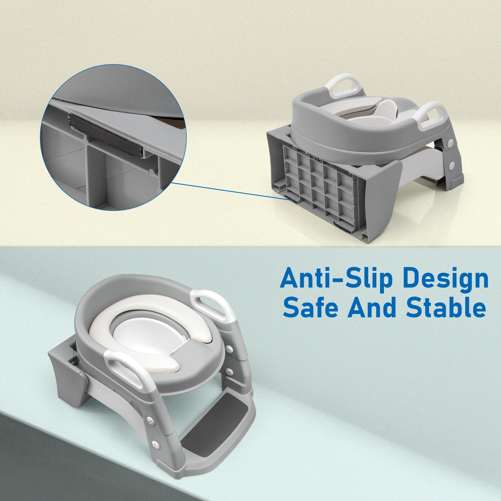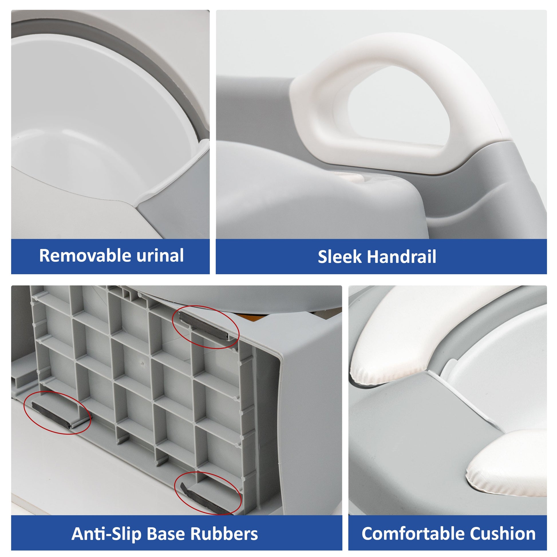 - 3-in-1 Design: Functions as a toilet seat with ladder, folding potty with removable urinal, and squat toilet adapter.