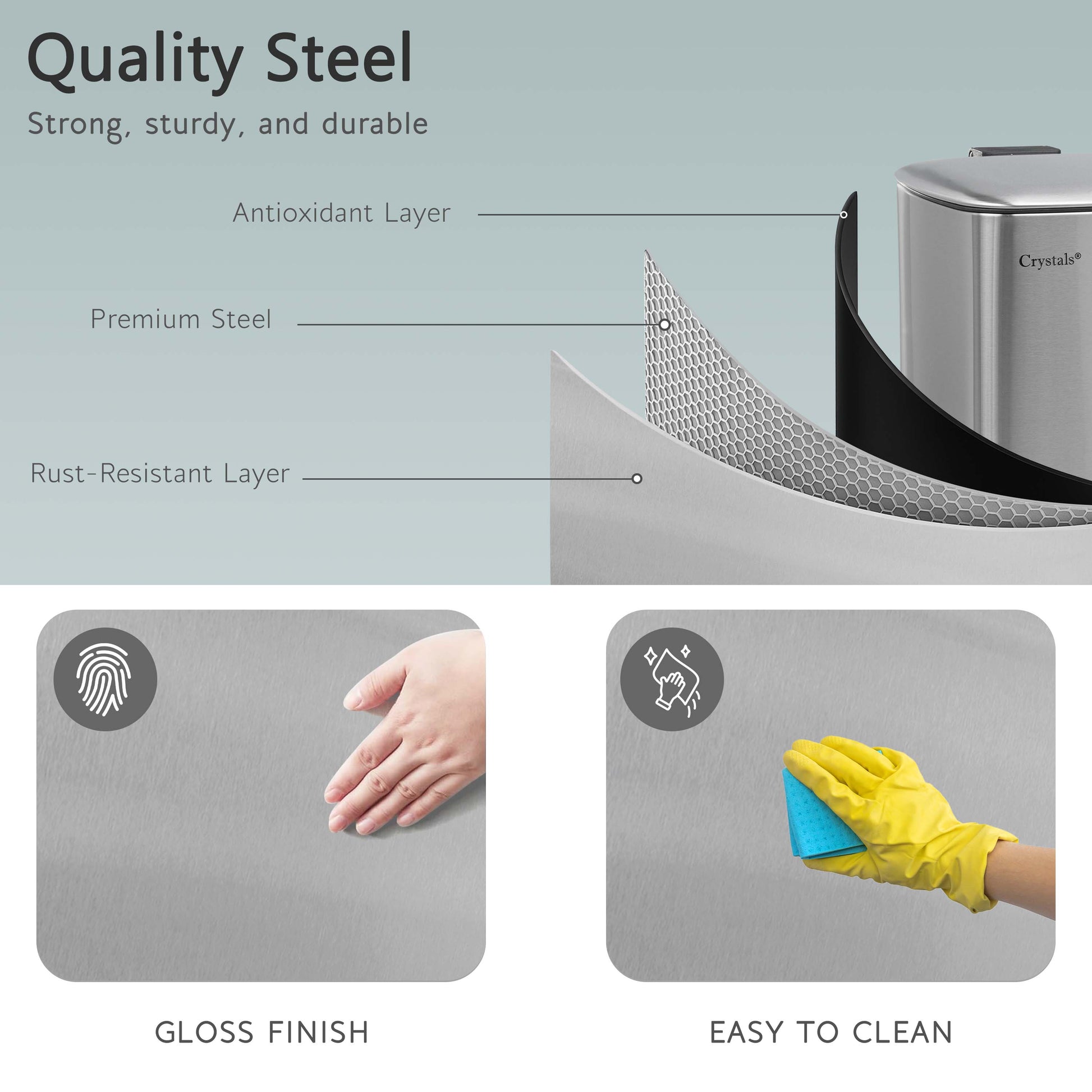 Built from durable stainless steel, this bin includes a removable plastic inner bucket for easy cleaning and emptying. With its compact square shape and smudge-resistant surface, it fits neatly into smaller spaces while maintaining a clean, modern look. Available in Silver, White, or Black.