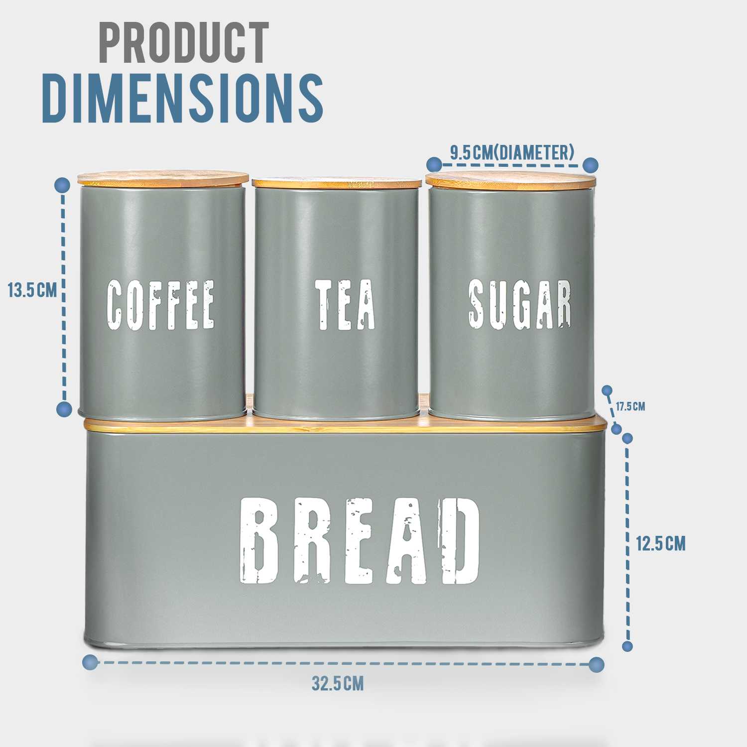 - Bread bin Size (L = 32.5 cm, H = 12.5 cm, W = 17.5 cm) Approx