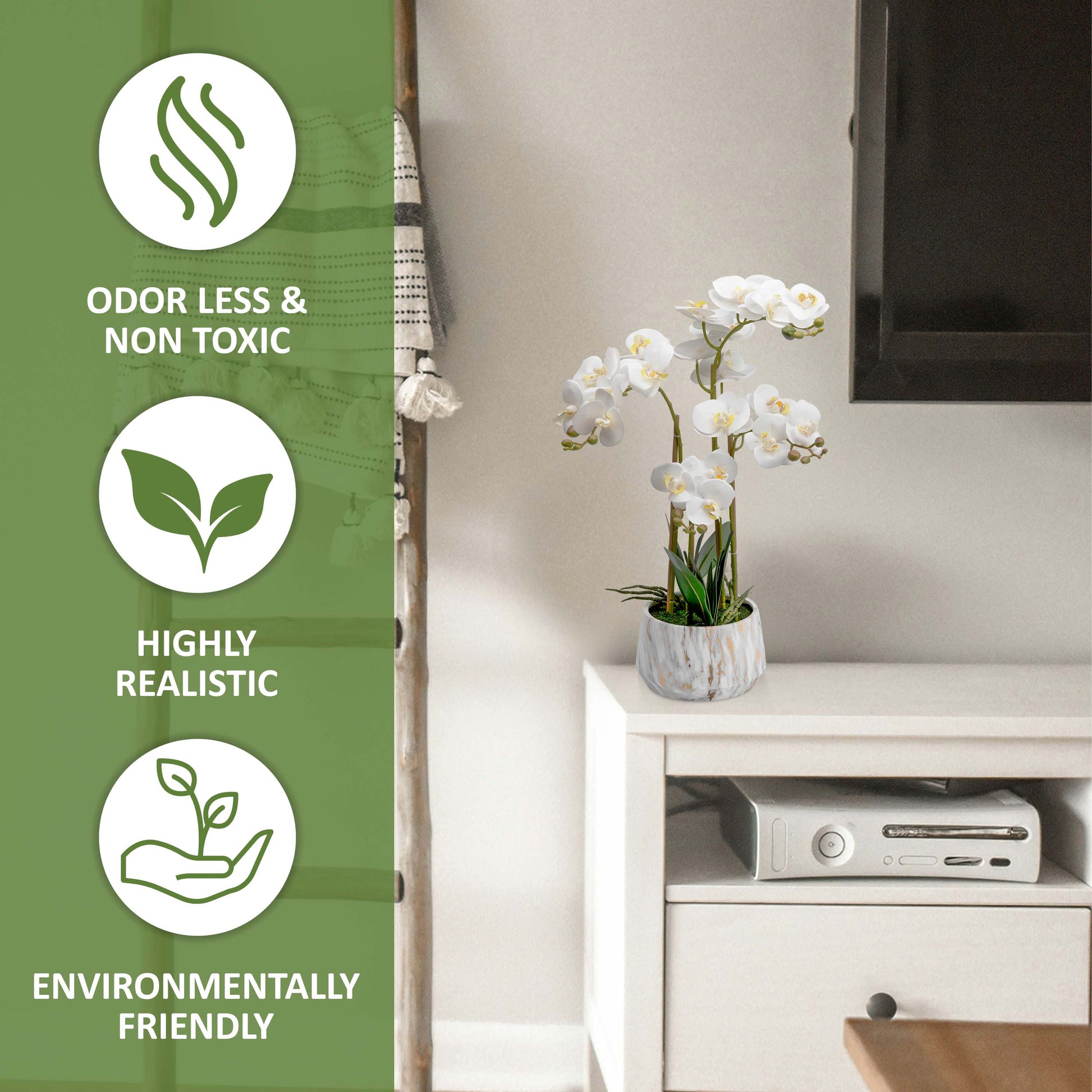 Add a touch of natural elegance to your space with this beautifully crafted artificial Phalaenopsis orchid. Featuring lifelike blooms and realistic foliage, this faux flower arrangement offers the beauty of real orchids without the maintenance.