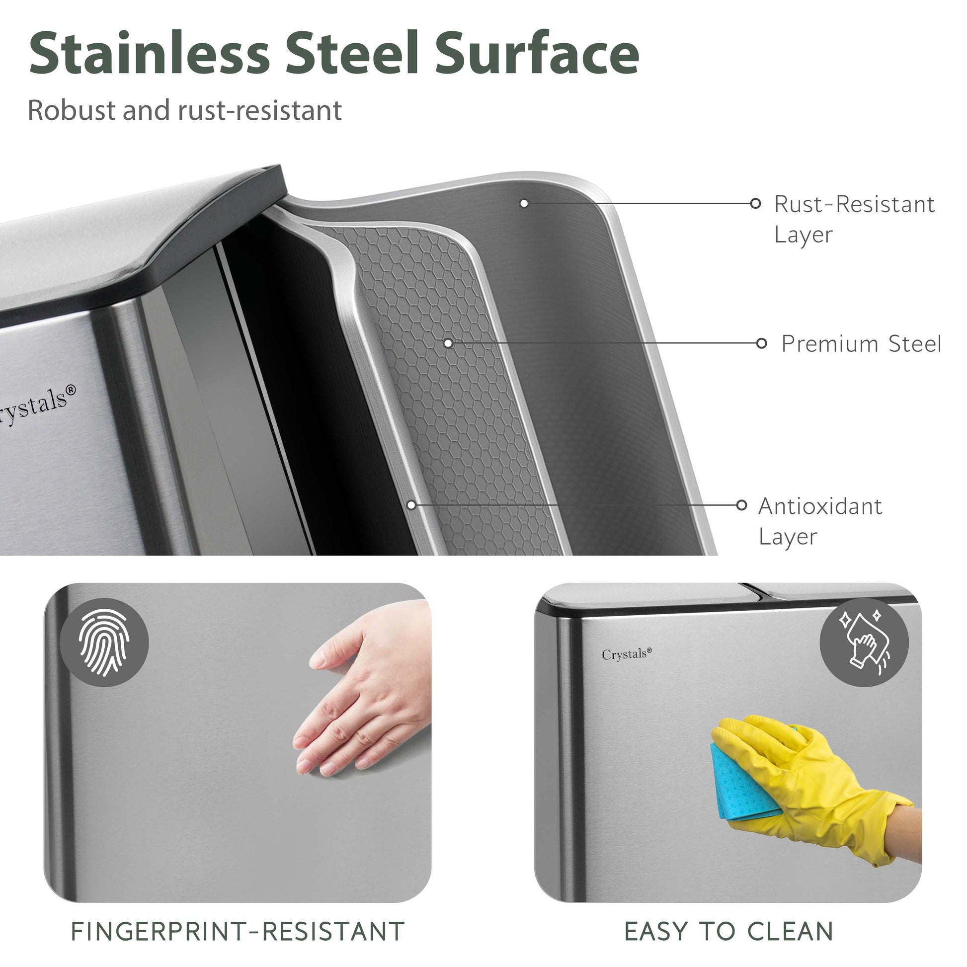 Upgrade your kitchen waste management with this stylish and practical 60L dual-compartment recycling bin. Designed with modern aesthetics in sleek silver and white, this step trash can blends effortlessly into any contemporary kitchen. The two-compartment design makes it easy to separate recyclables and waste, all without touching the lid—just step and drop.