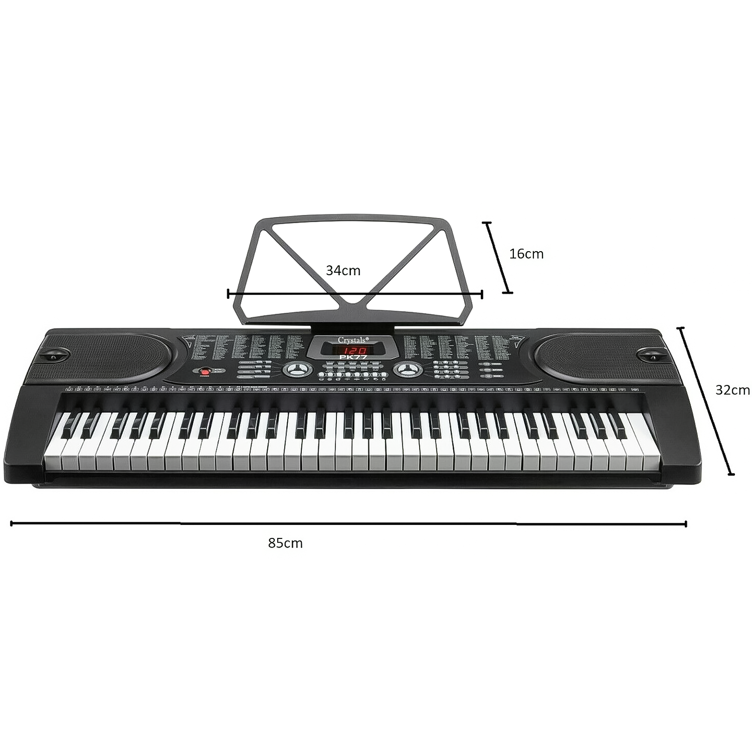 61 keys electronic teaching keyboard digital music piano is ideal for beginners with its built-in intelligent guide features and fun functions which help to develop music skills and take your musical talent to the next level. It has features of easy to read LCD screen and clear labelling, making music with this keyboard is fund hassle-free. Impress all your friends and family by mastering different songs using the unique guide functions which include one-key, follow and ensemble tutorials. The innovative follow function will wait until you play the notes correctly before continuing, acting as a virtual music teacher. This keyboard is perfect for those taking their first steps in music and is a great way to develop their knowledge and skills whilst having fun. Our Crystals 61 keys electronic piano also included is a detachable rest, perfect for displaying your sheet music or notebooks in a practical and easy-to-read way. Dimensions/Size: Length 85cm x Width 32cm x Height 11cm