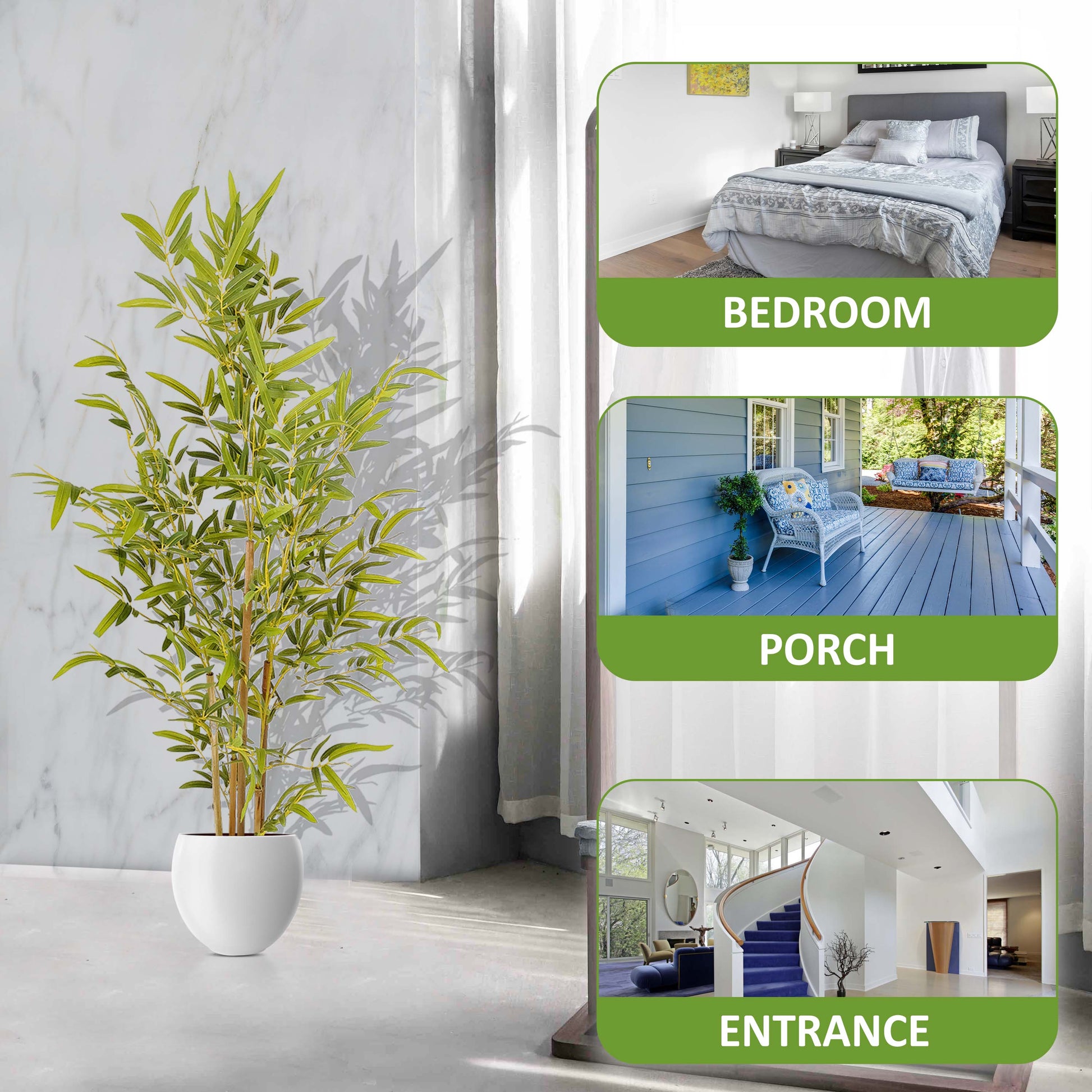 Low Maintenance Elegance: Enjoy the beauty of bamboo without the need for watering, sunlight, or ongoing care. This artificial bamboo remains pristine and vibrant year-round, making it an ideal choice for those with busy schedules or limited gardening experience.