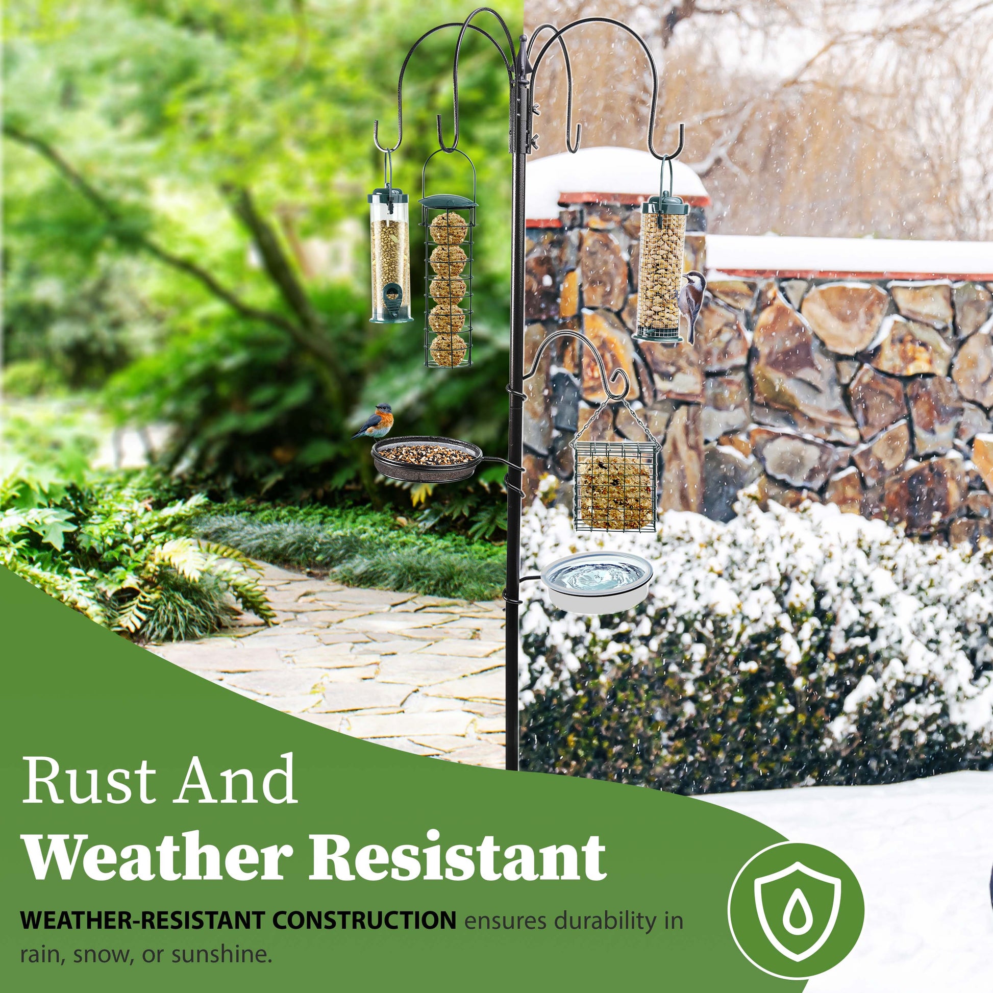 - All-in-one feeding, watering and bathing for garden birds
