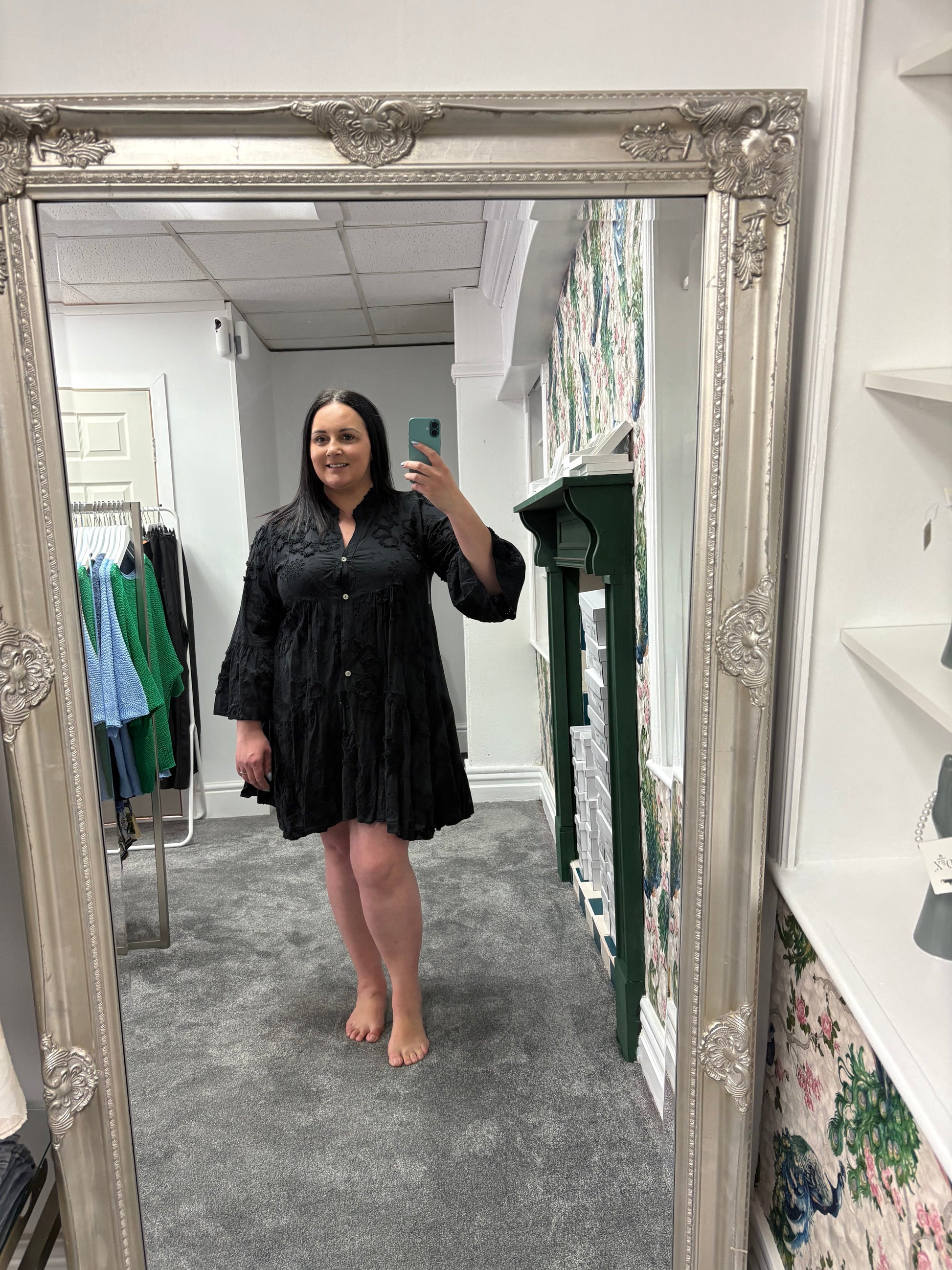Black Cotton Flower Dress – One Size (Fits 8–18)