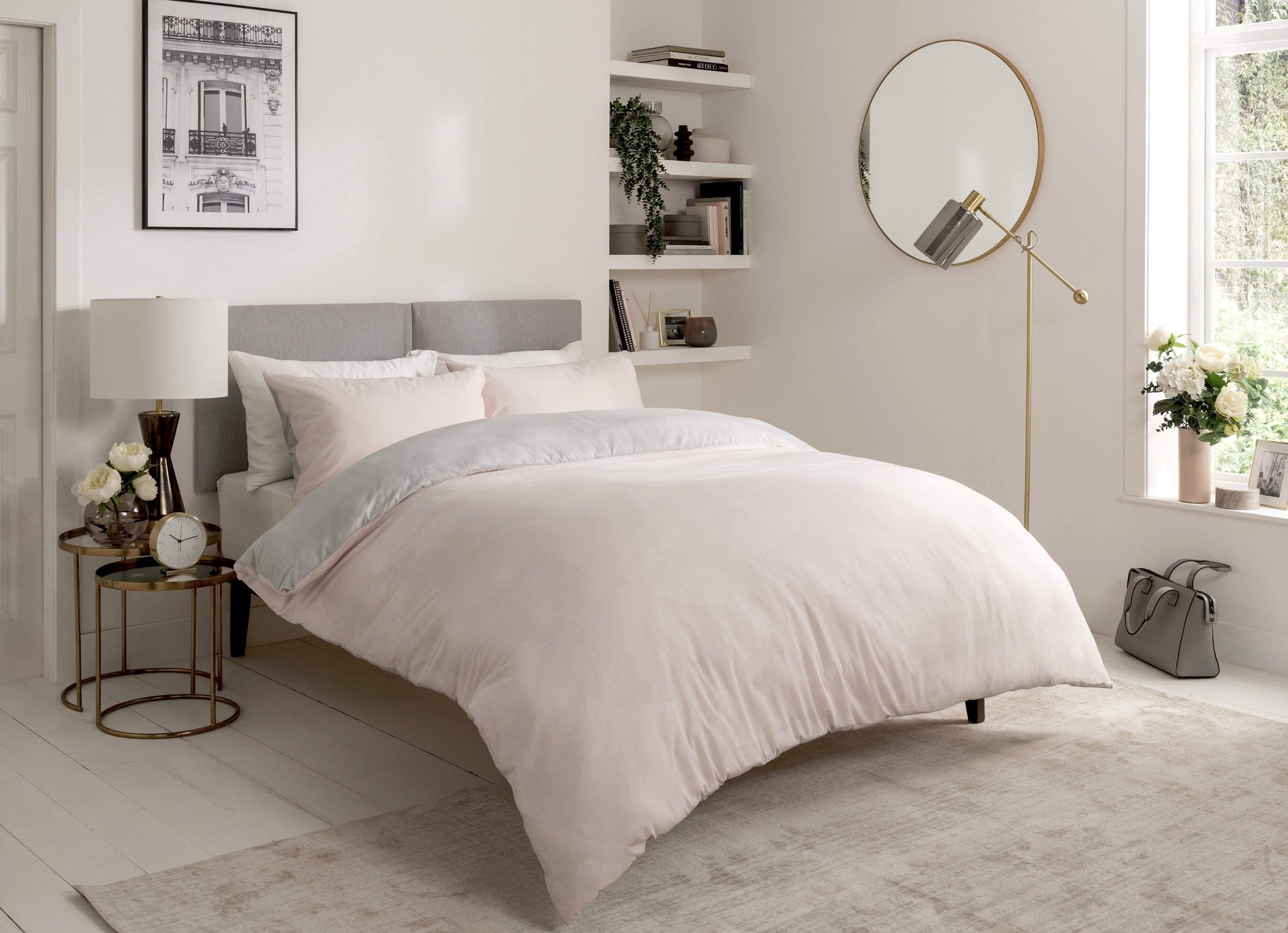 The Chambray Reversible Duvet Set is available in soft greys and pinks, allowing you to choose the look that best fits your personal style and bedroom decor.