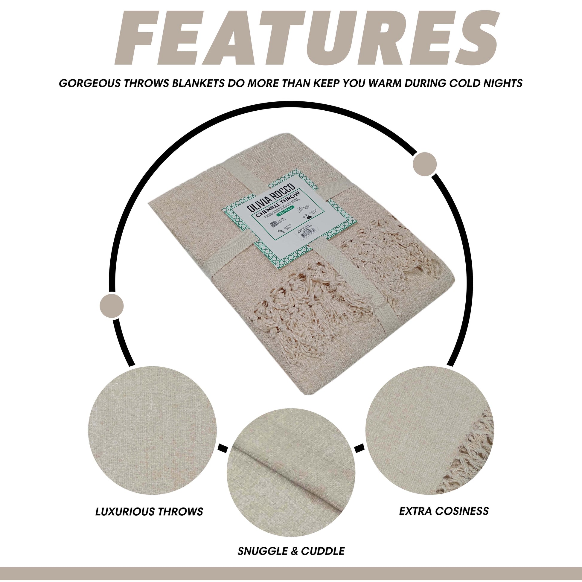 Chenille Tassel Elegant Throw Blanket for Couch Sofa Bed All-Season Soft Luxury by OLIVIA ROCCO