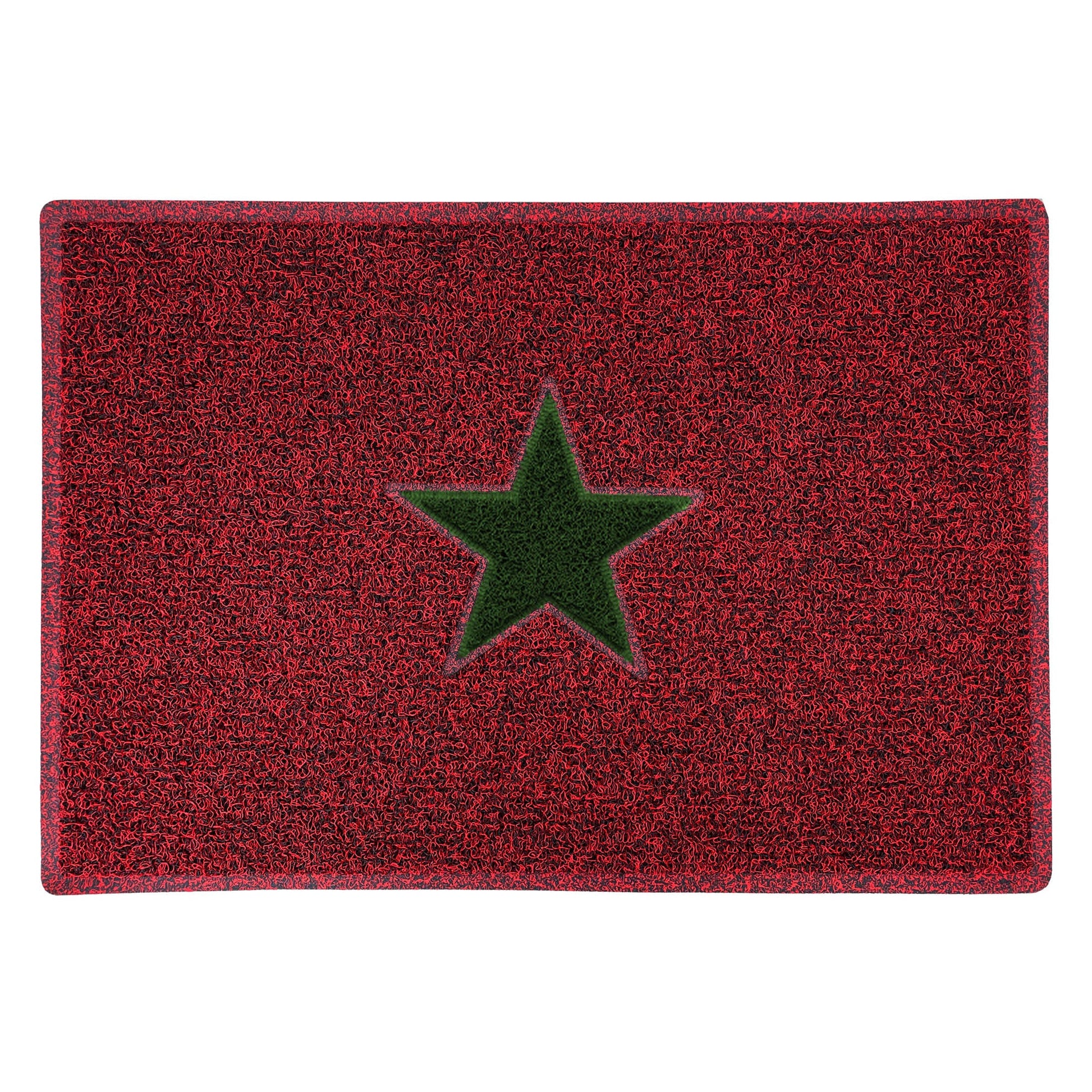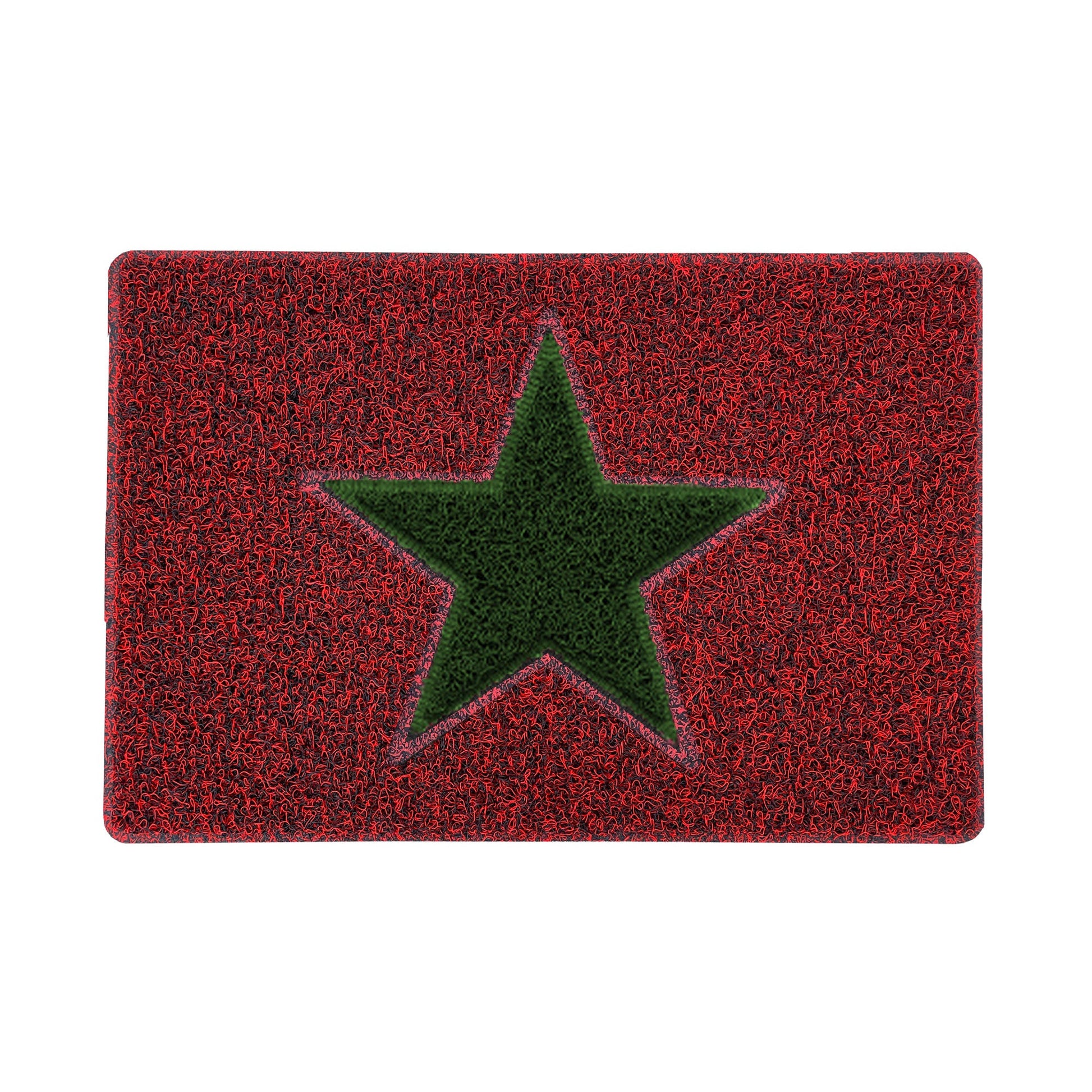Christmas Star PVC Spaghetti Doormat - Red & Green Design