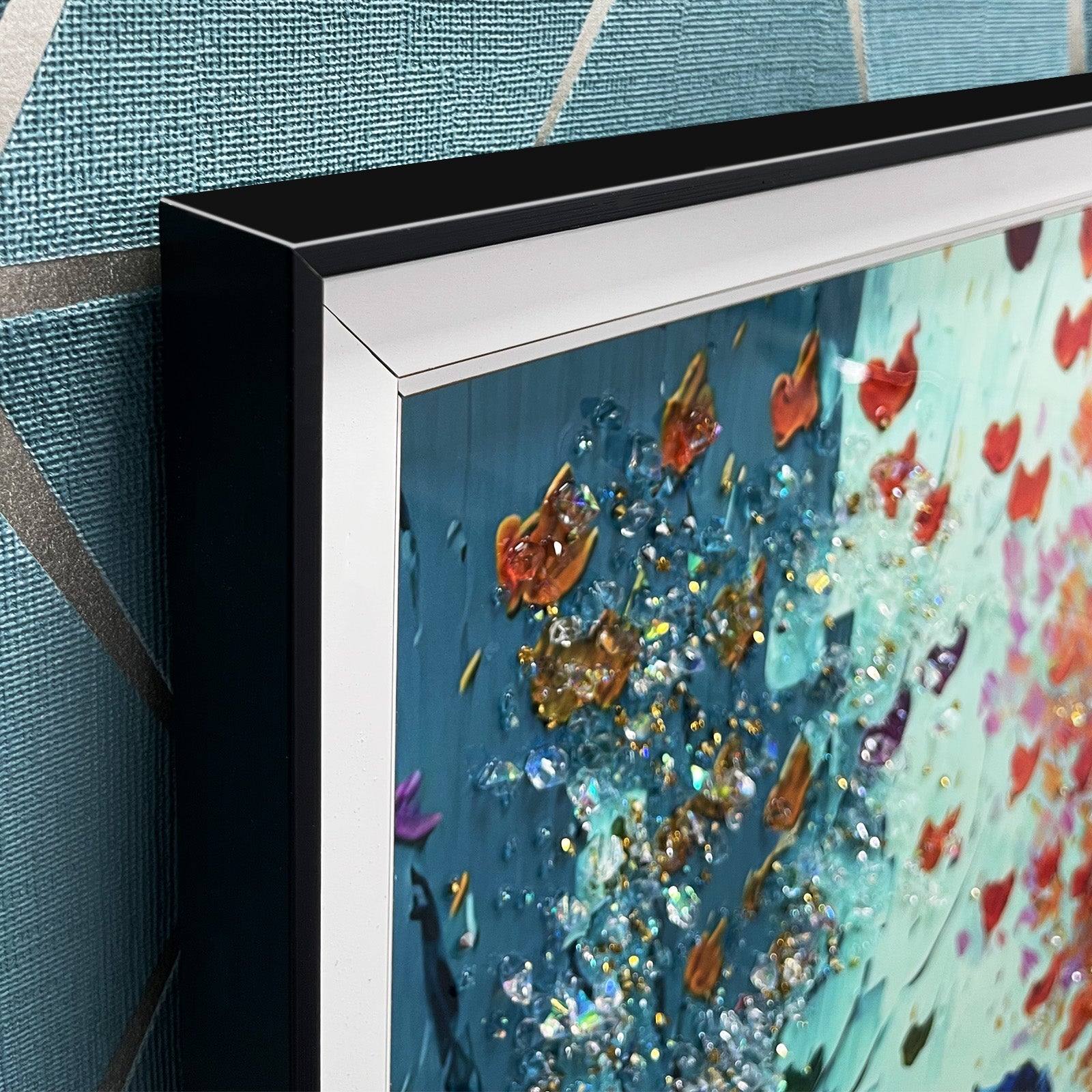 Frame Made of high-quality plastic material. The product offers an excellent level of durability and flexibility. The paper is smudge-proof, so you can wipe it with a dry cloth. It has pre-mounted hangers so is ready to hang right out of the box. Our designs are very sharp with high resolution, saturated color, and the highest possible tonality. The unique and modern design of our hand painting on canvas will be a stylish addition to your home.