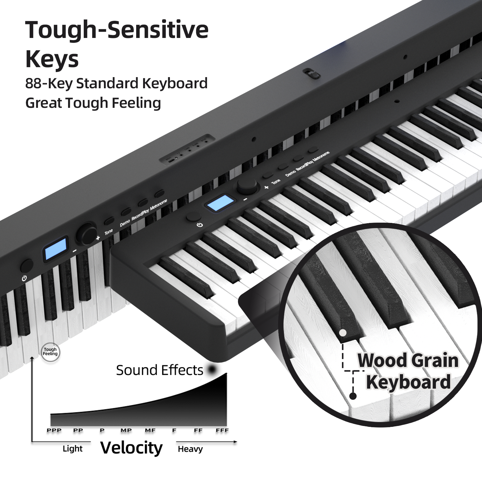 - Full-size semi-weighted keys, the sound changes with velocity, same playing performance as the actual triangular piano, best for beginners and advanced pianists as a backup piano.