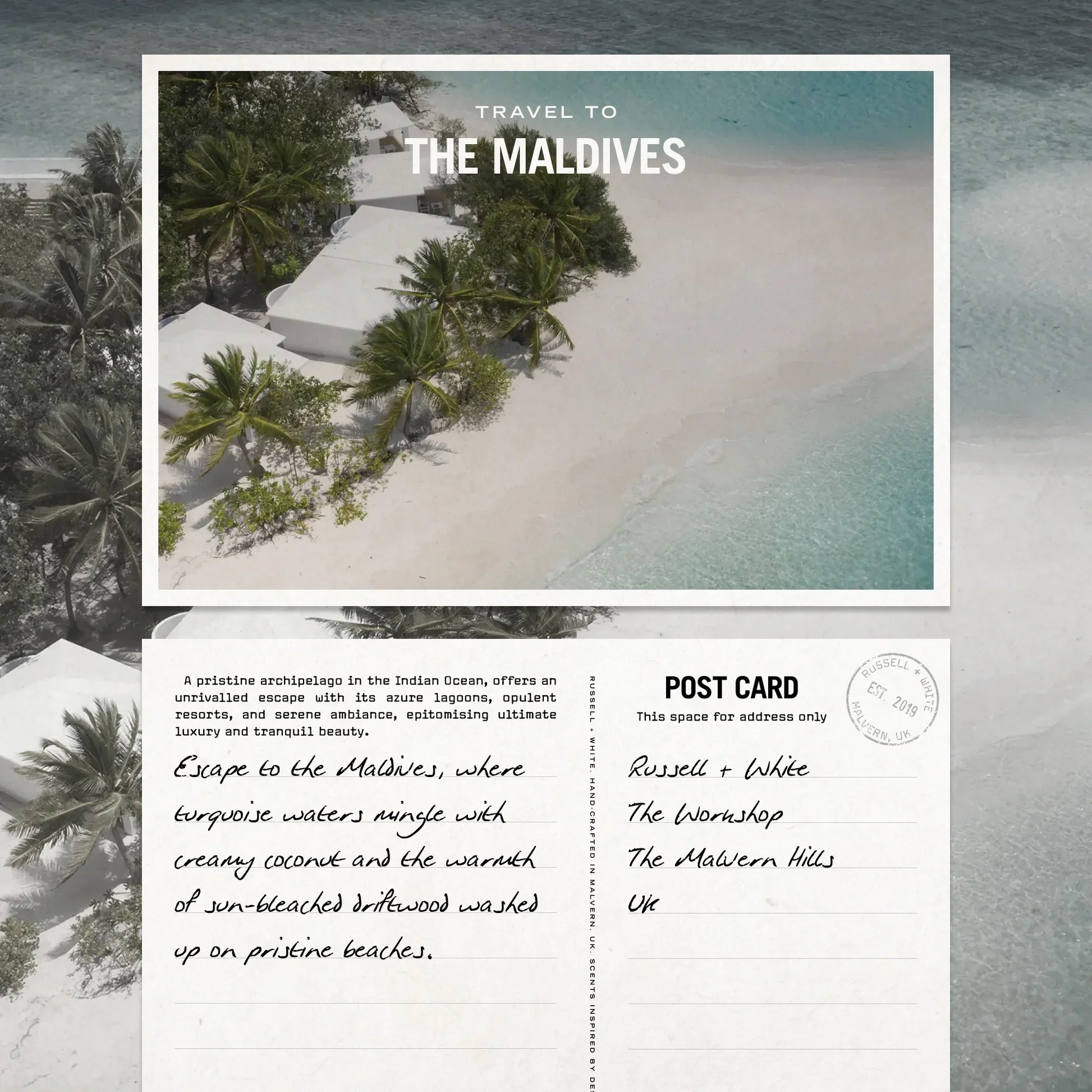 Escape to the Maldives, where turquoise waters mingle with creamy coconut and the warmth of sun-bleached driftwood washed up on pristine beaches.