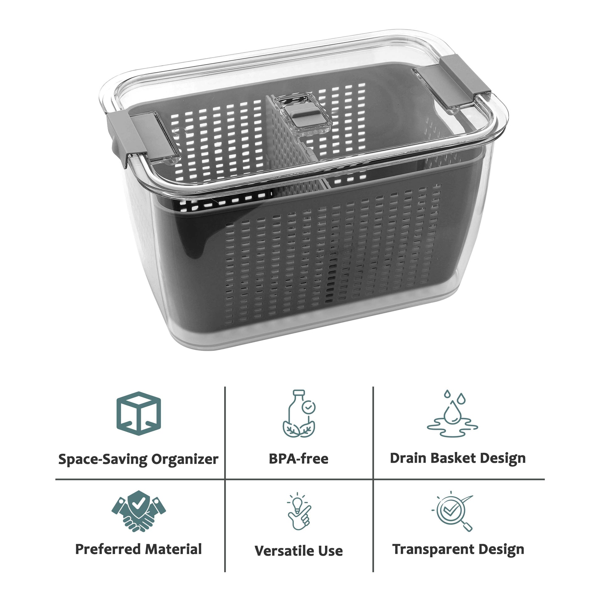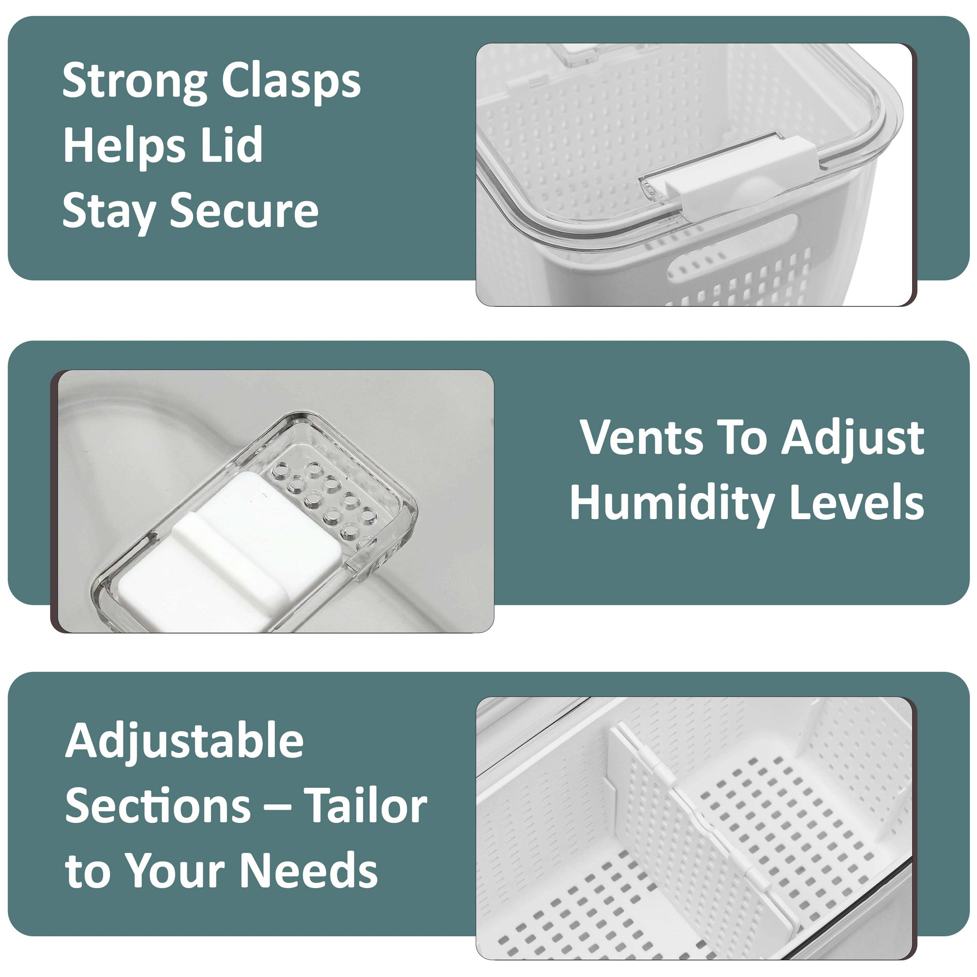 - Drainage & Freshness – Built-in colander for draining, plus adjustable air vents to regulate airflow and keep food fresh.
