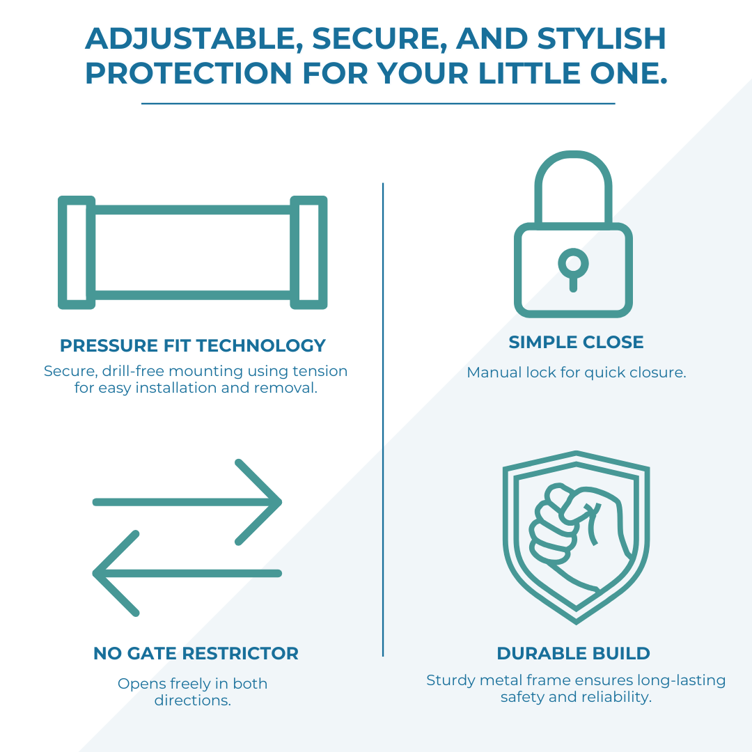 ✅ One-Hand Operation – Easily open and close the gate with one hand, perfect for busy parents.