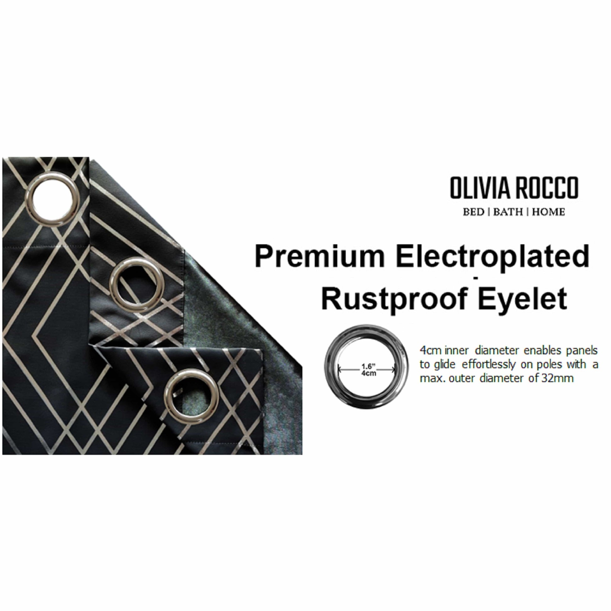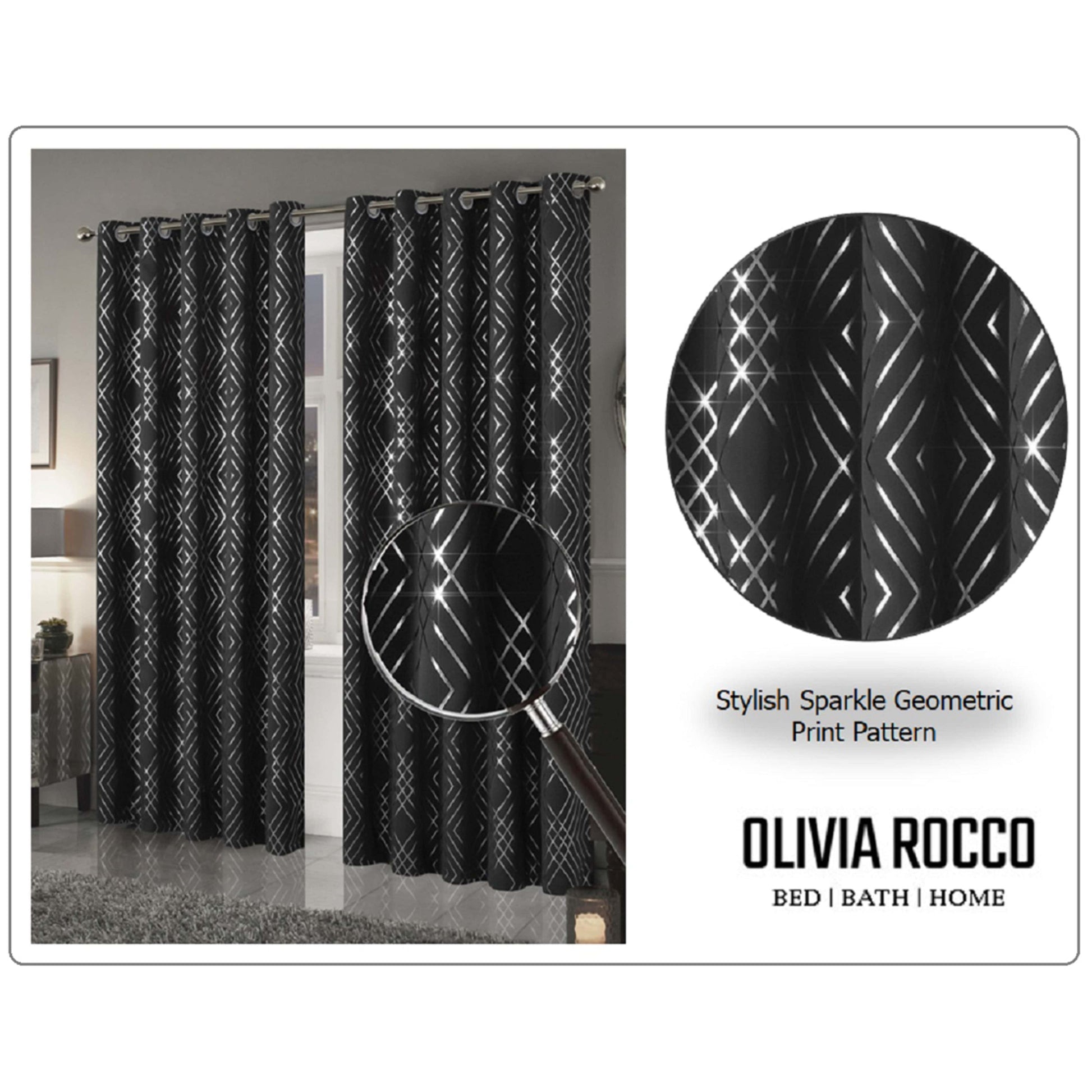 Geometric Black Sparkle Blackout Curtains Soft Thermal Insulated Eyelet Ring Top Living Room & Bedroom Drapes by OLIVIA ROCCO