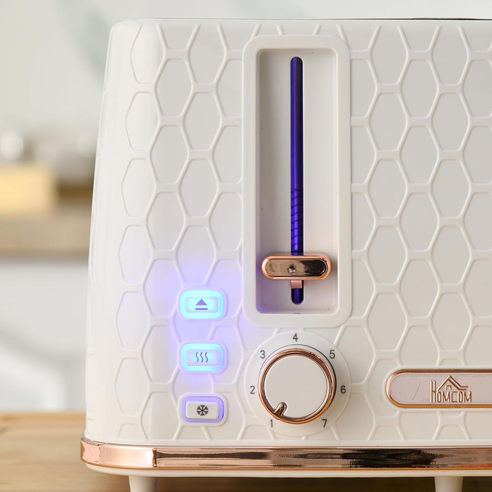 HOMCOM 1.7L Kettle and Toaster Set with Defrost, Reheat and Crumb Tray, White