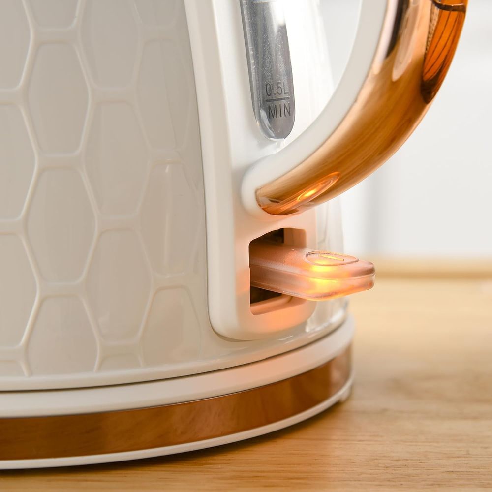 ? 1.7L fast boil kettle and matching four-slice toaster. Stylish honeycomb design