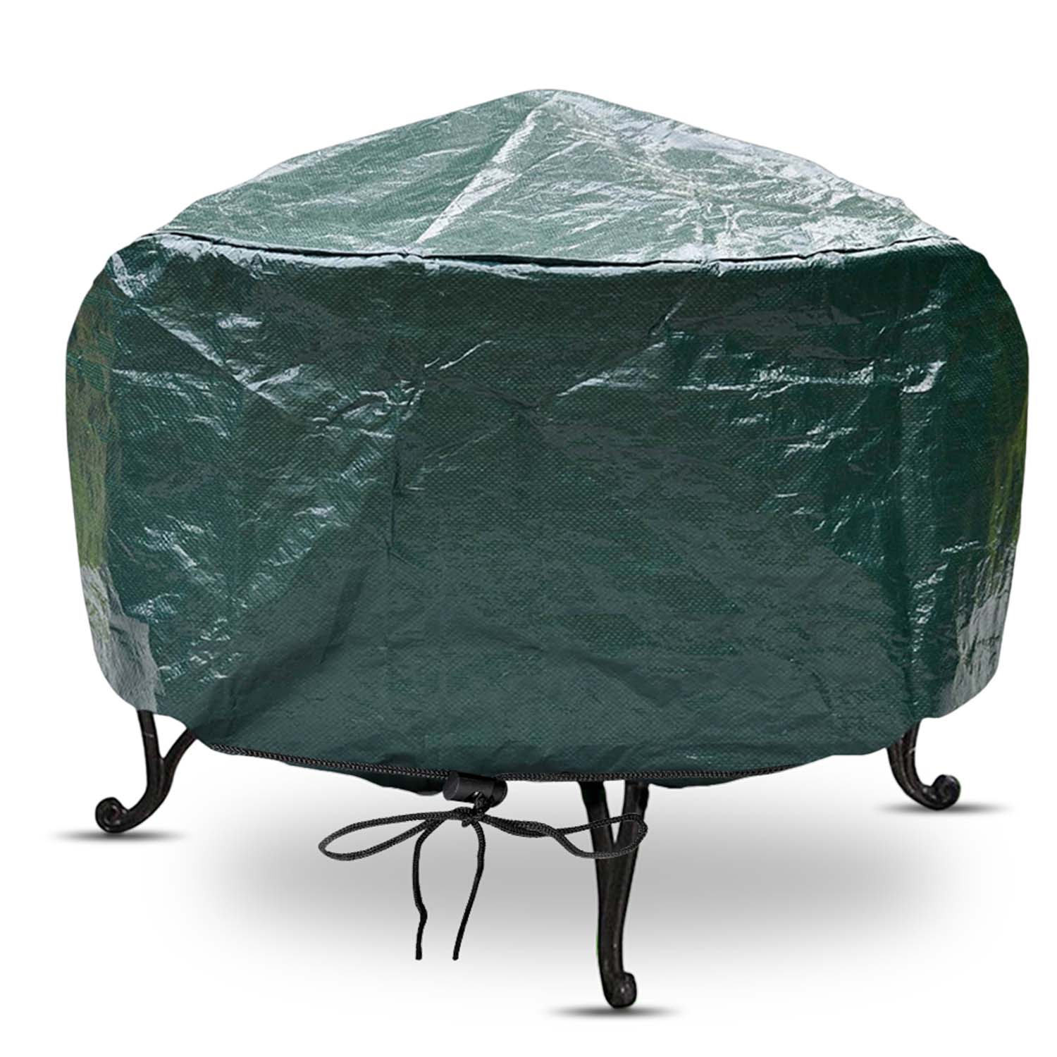 Large fire pit covers keep your fire pit protected from the elements all year round. Heavy-duty green PE material which is also UV treated and has a drawcord for secure closure.