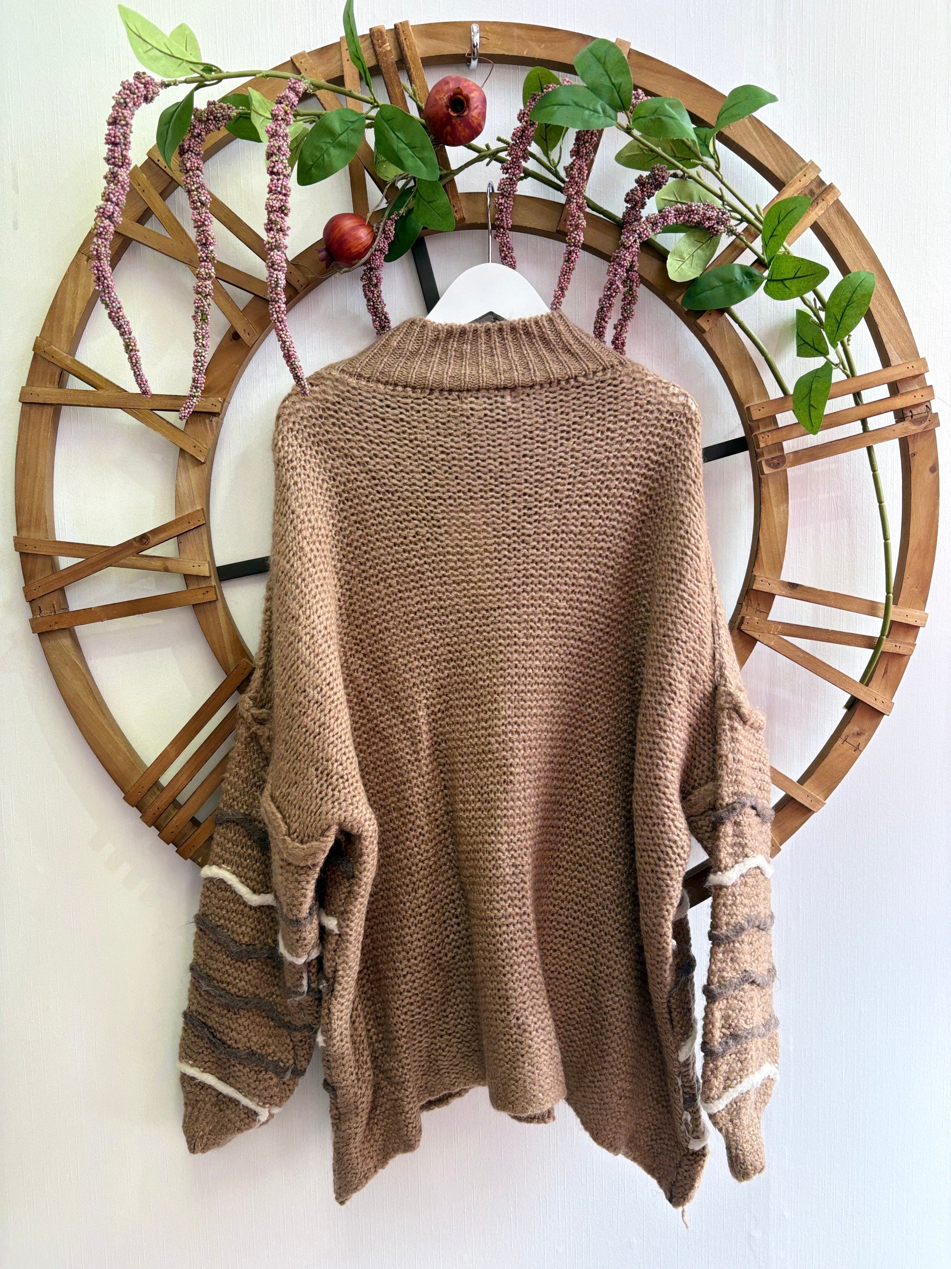 Luxtyle Chunky Stripe Knit Jumper – Ecru, Camel & Khaki – One Size (up to 18)
