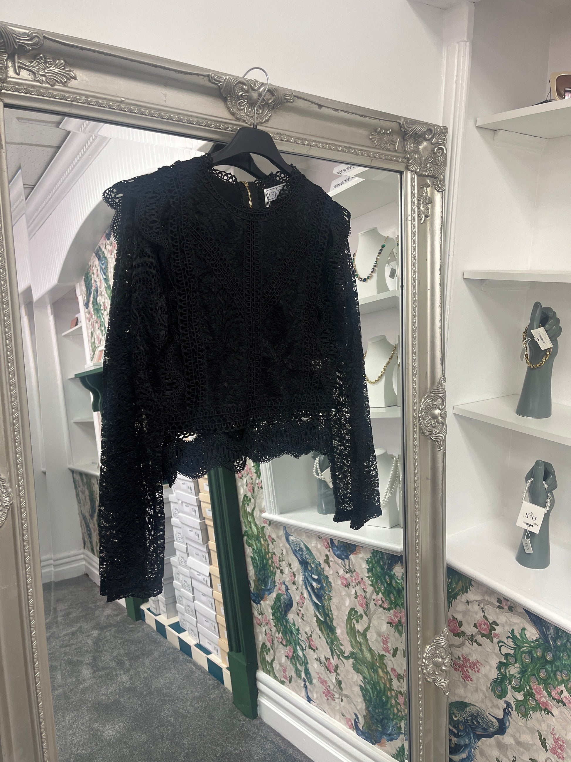 Luxtyle Cropped Long Sleeve Lace Top – One Size (Fits 8–14)