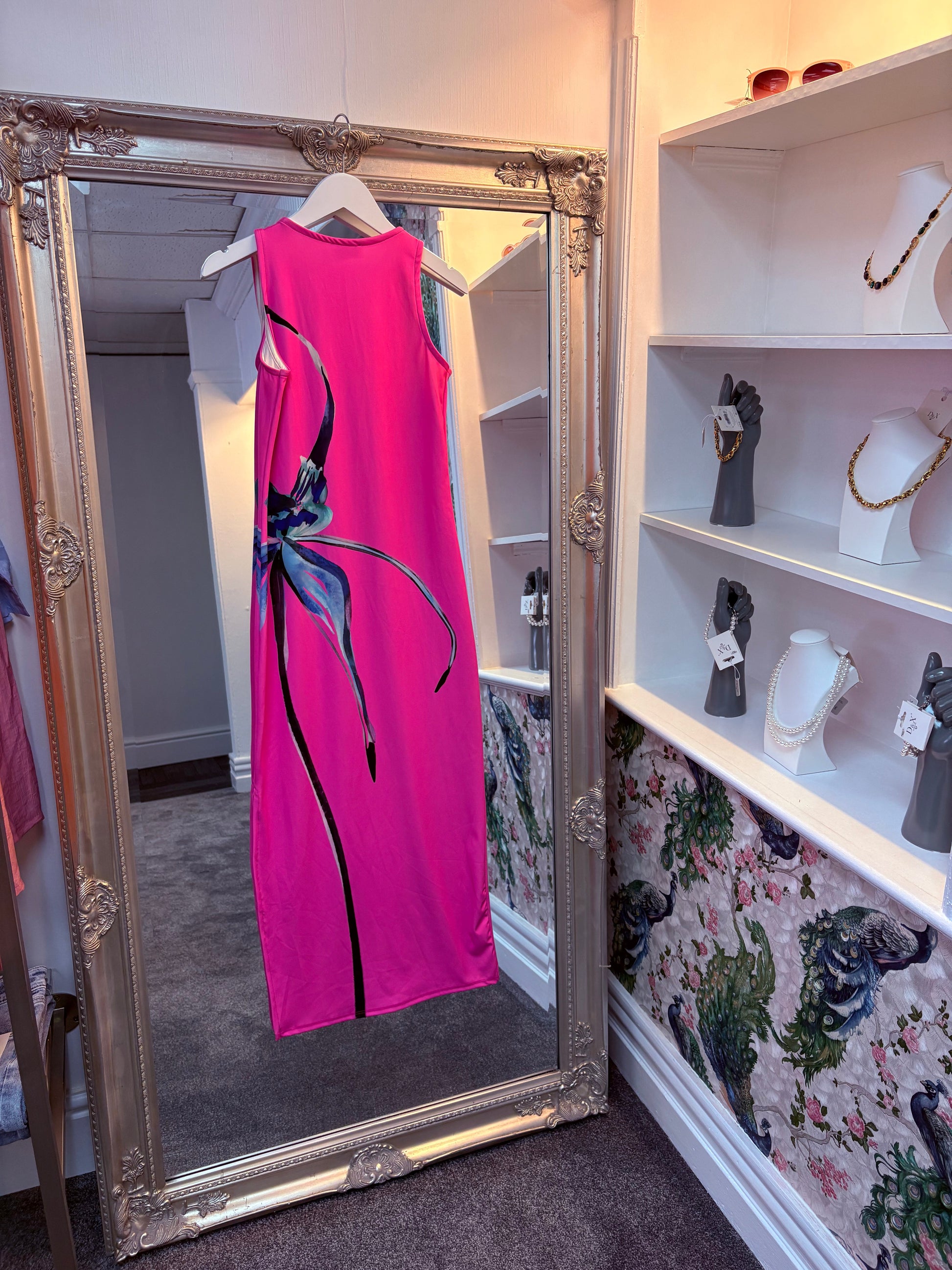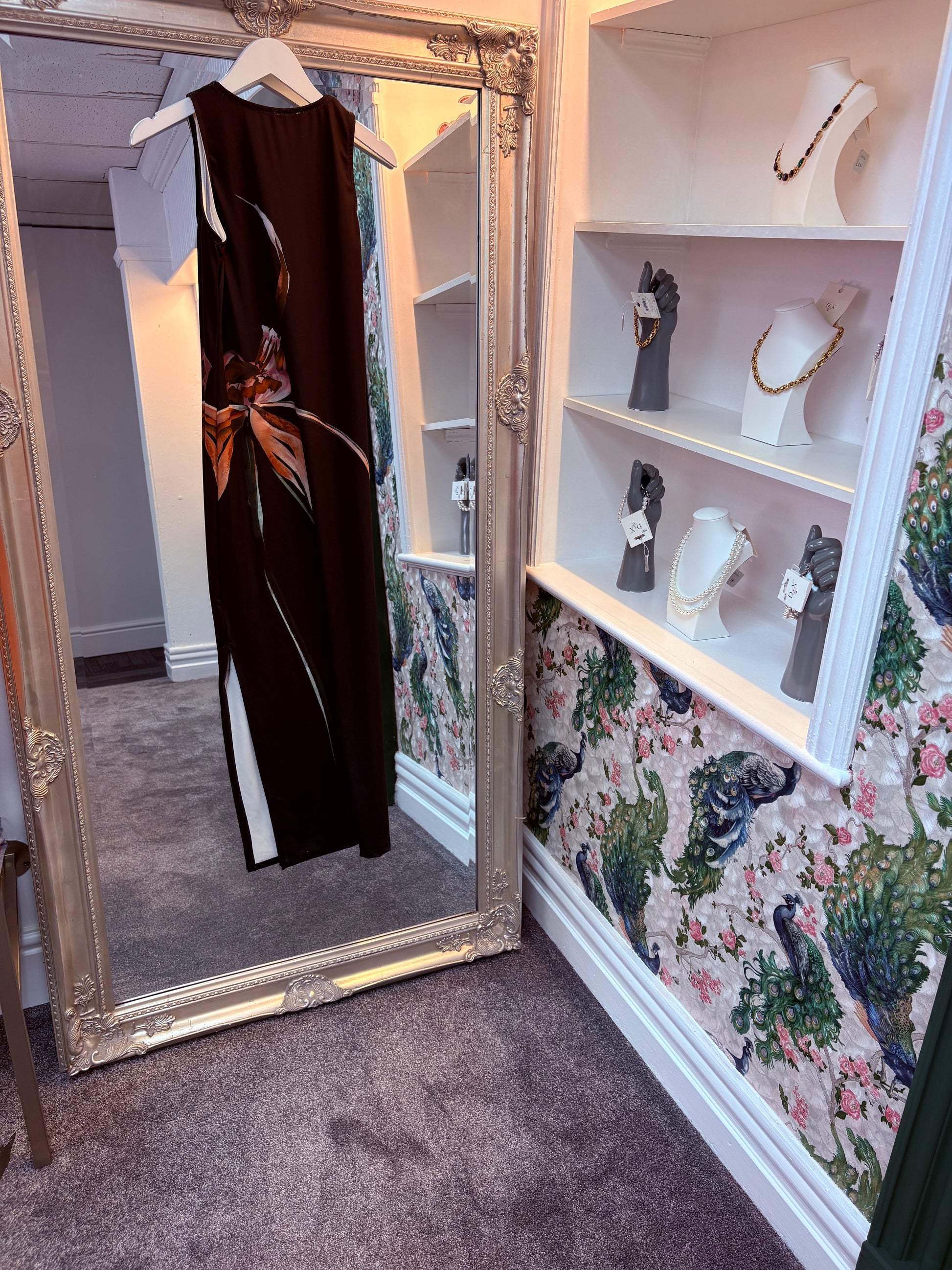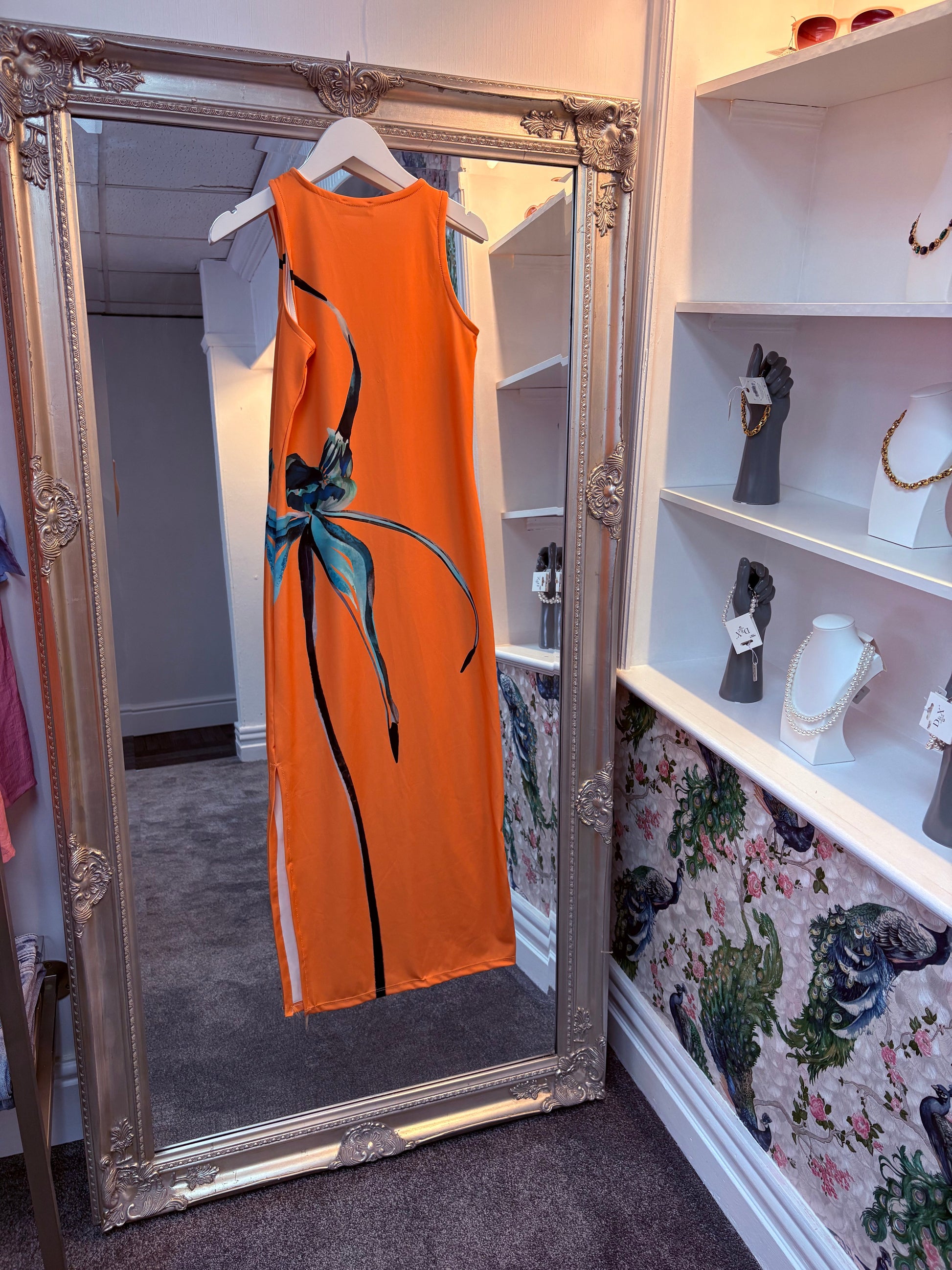 A sleek and elegant floral maxi dress designed to flatter the figure. Made from a soft, lightweight fabric that drapes beautifully, with a vibrant floral print that adds a statement touch. Perfect for summer occasions, evenings out, or holiday wear.