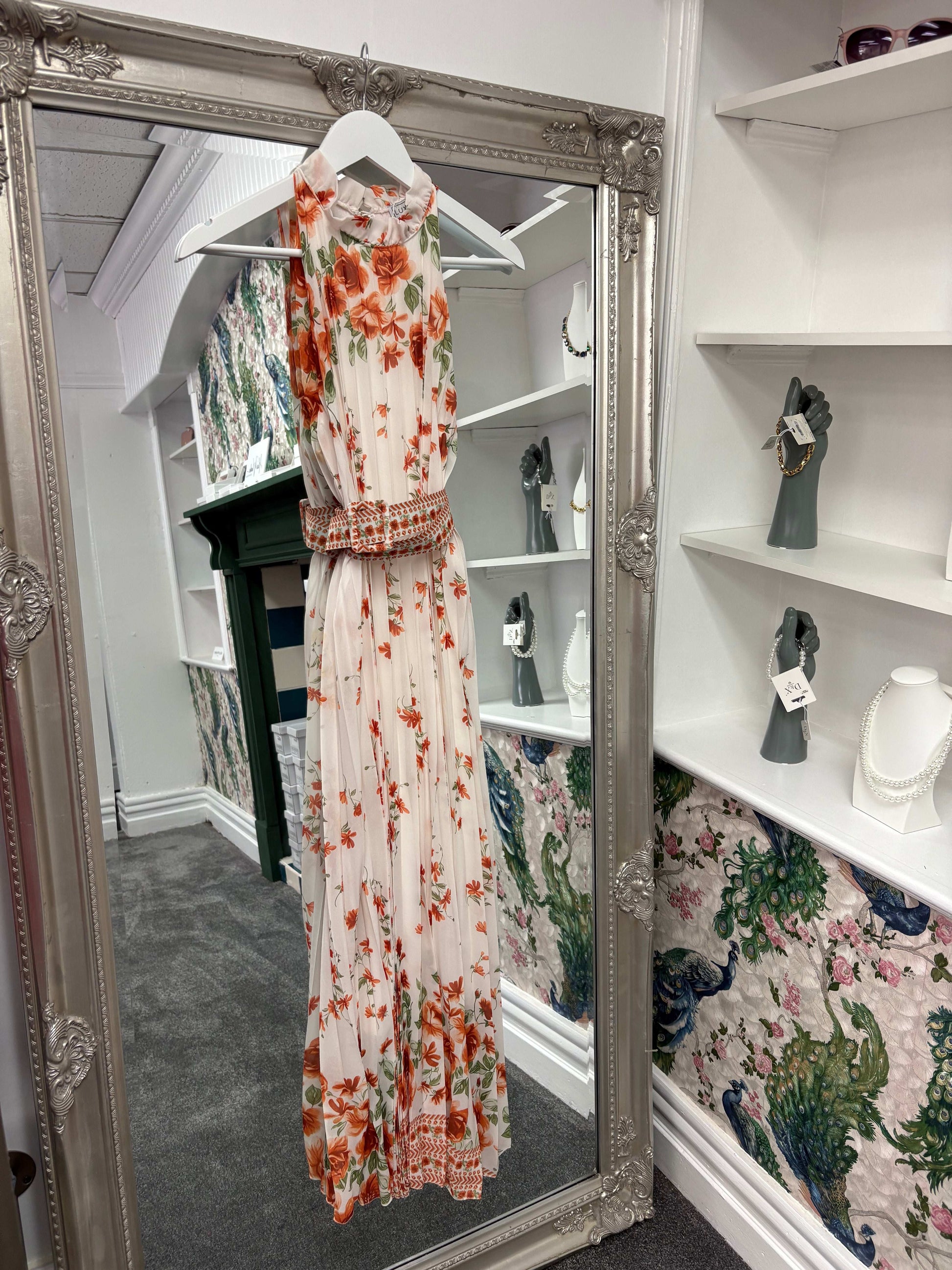 Luxtyle High Neck Pleated Orange Flower Dress – One Size (8–20)