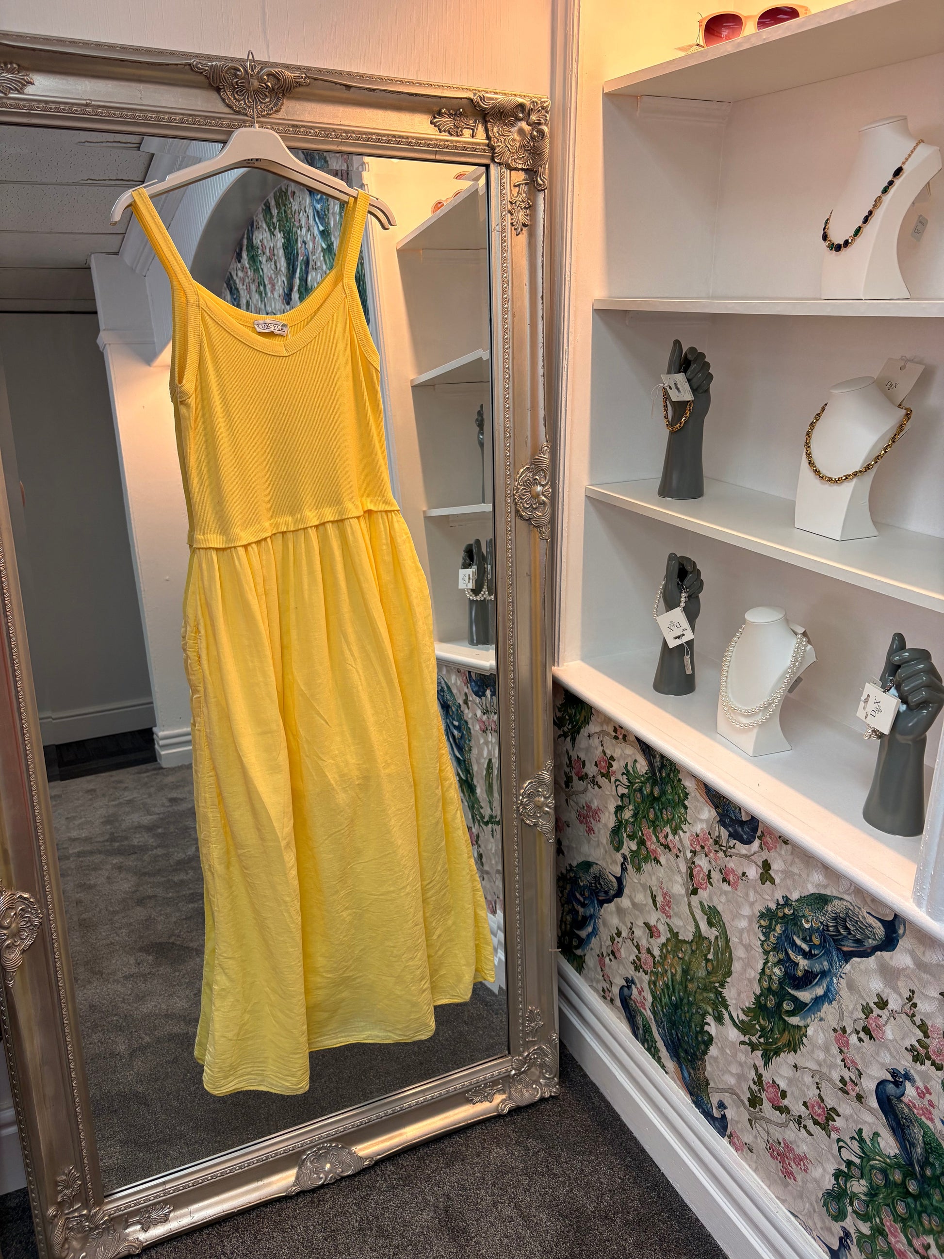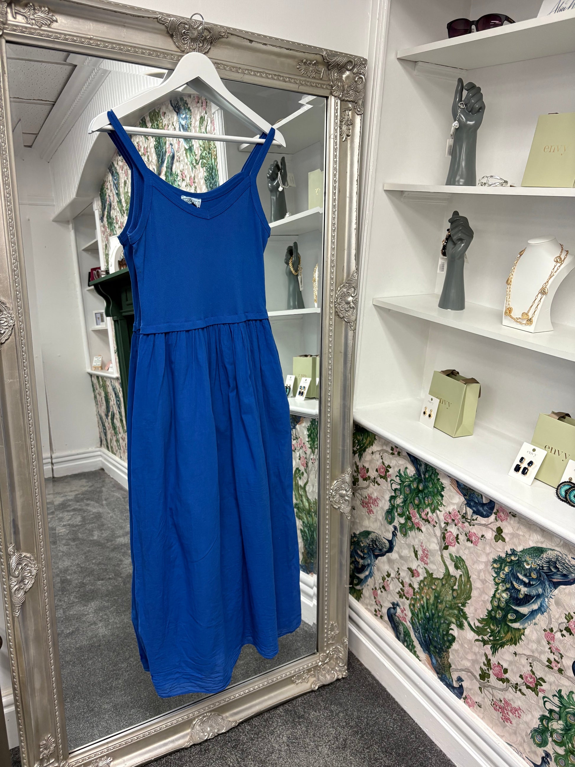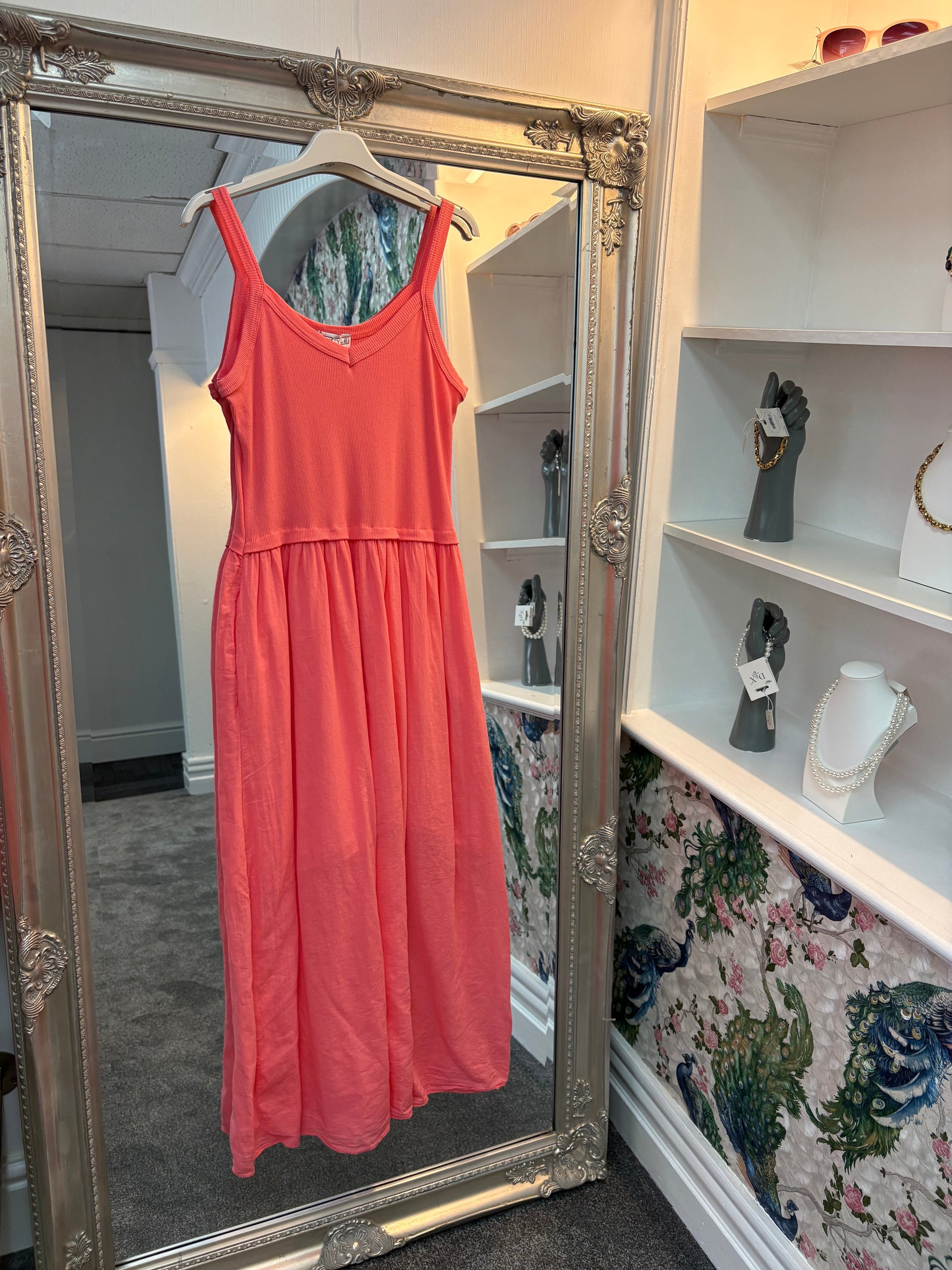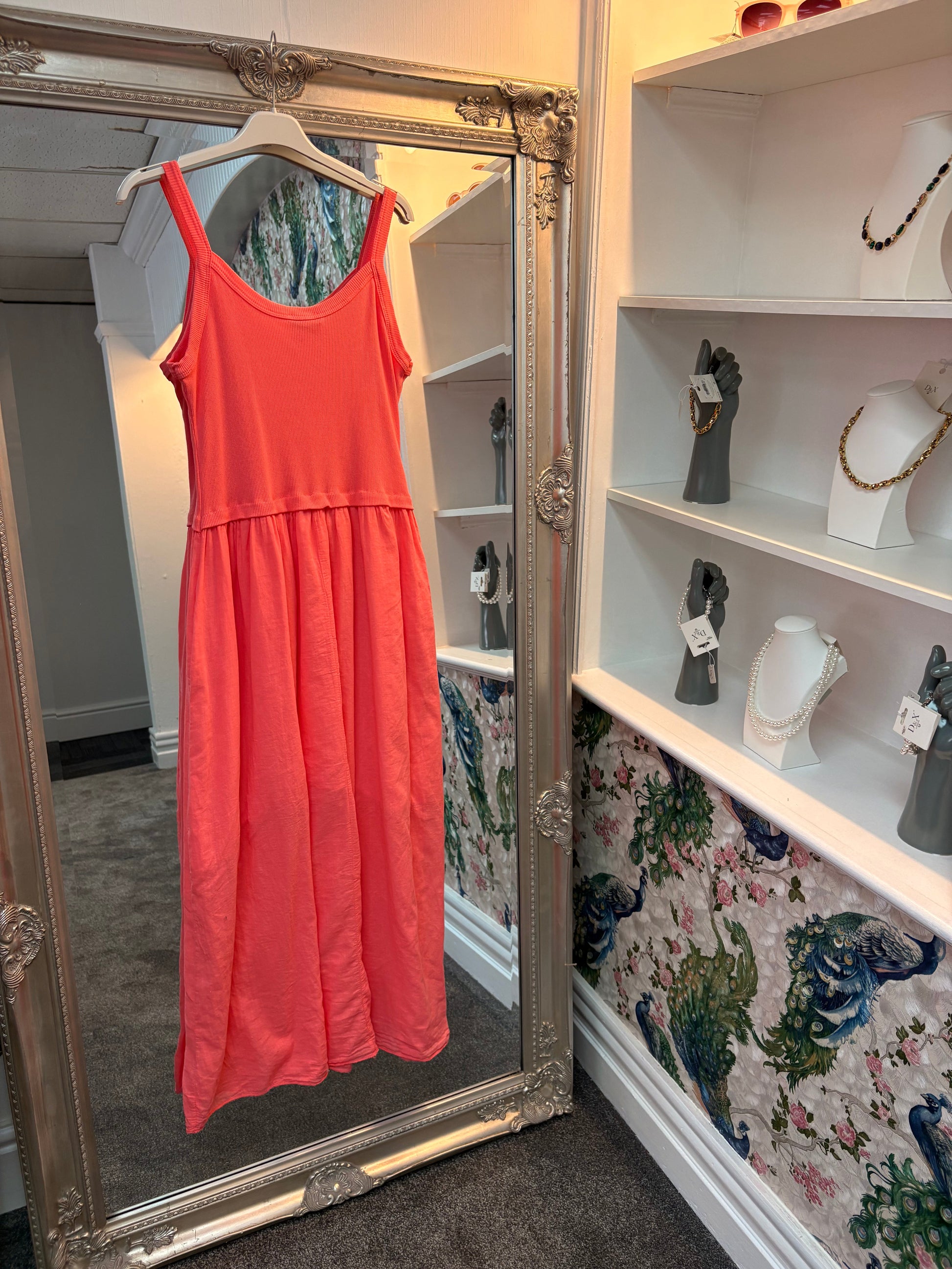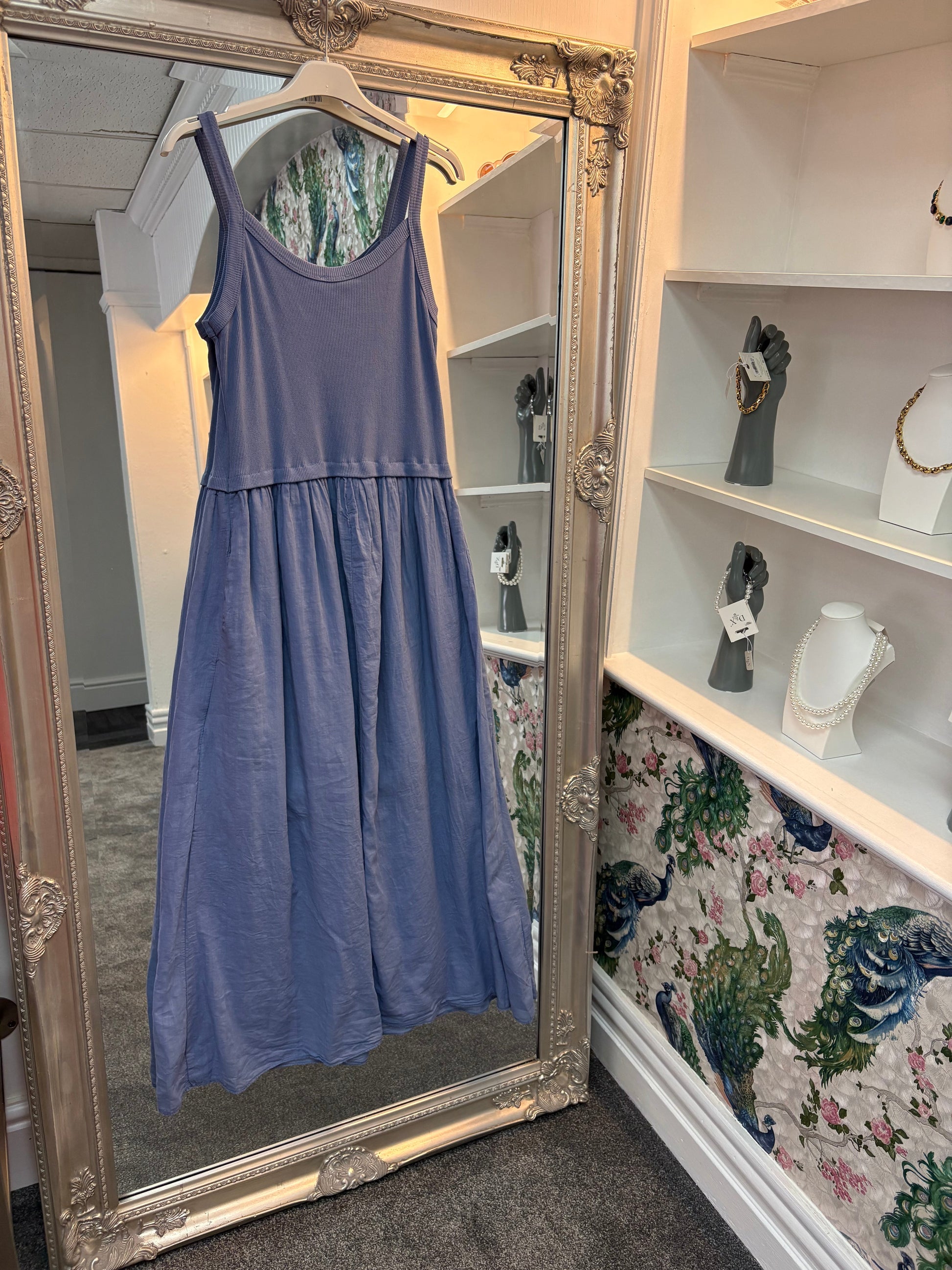This easy-wear ribbed top dress is perfect for warm days and relaxed evenings. Made with 90% cotton for breathability and comfort, it offers a flattering fit that adapts beautifully from size 8 up to size 18. The ribbed bodice provides gentle stretch while the flowing skirt gives a chic and effortless silhouette.