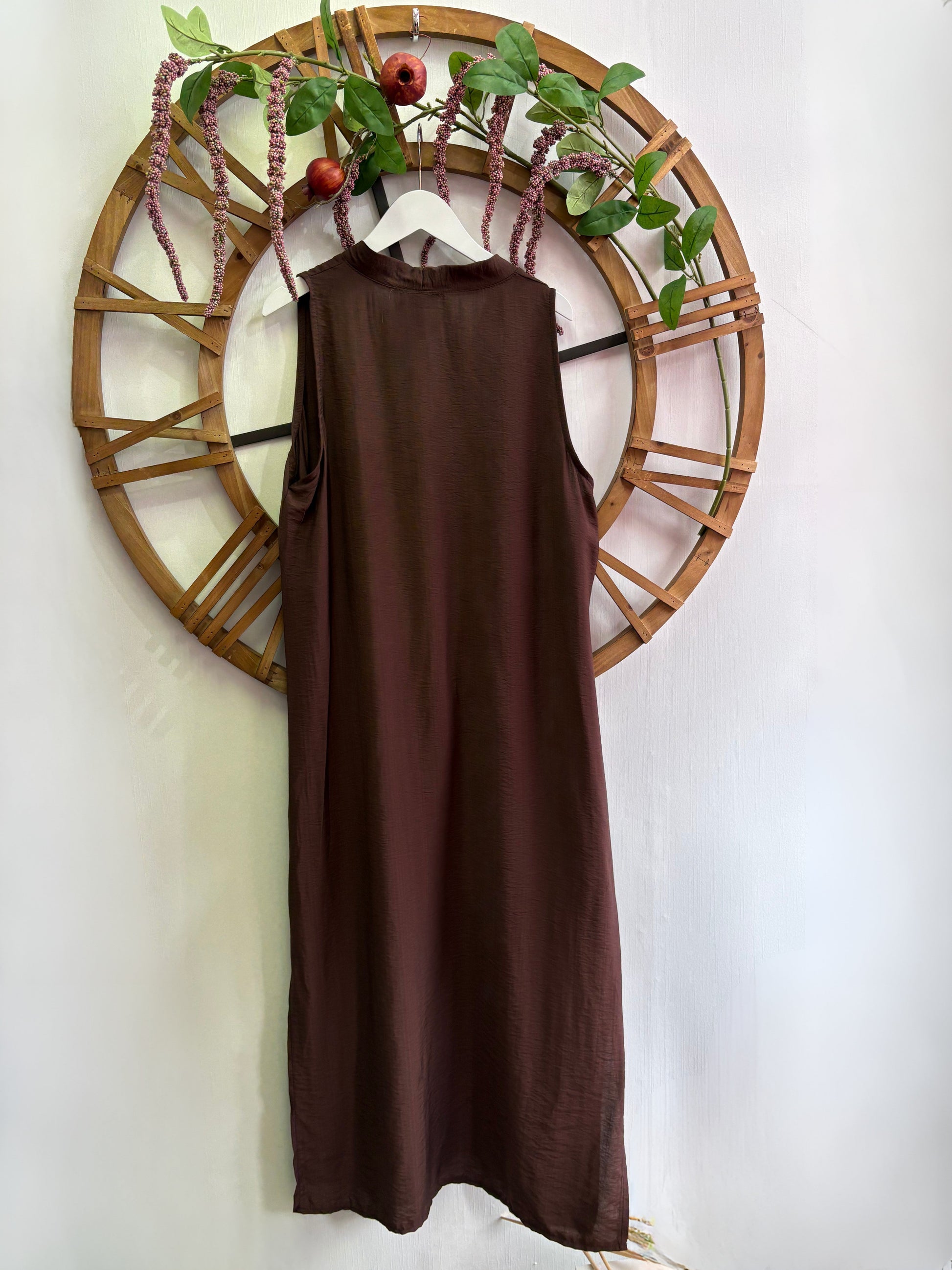 Luxtyle Sleeveless V-Neck Midi Dress – Berry or Chocolate (One Size up to 16/18)