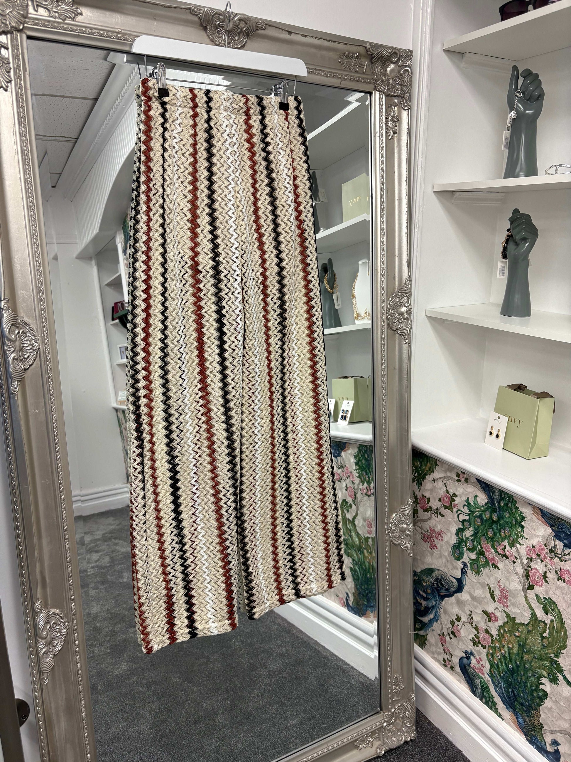 Luxtyle Zig Zag Wide Leg Trousers | Striped Knit Pants | One Size Fits 8–14
