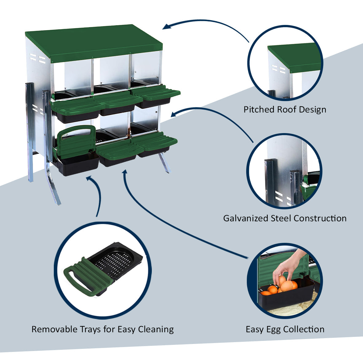 Pitched Roof Design – Sloped roof prevents hens from roosting on top and allows easy water runoff, keeping the nest clean and dry.