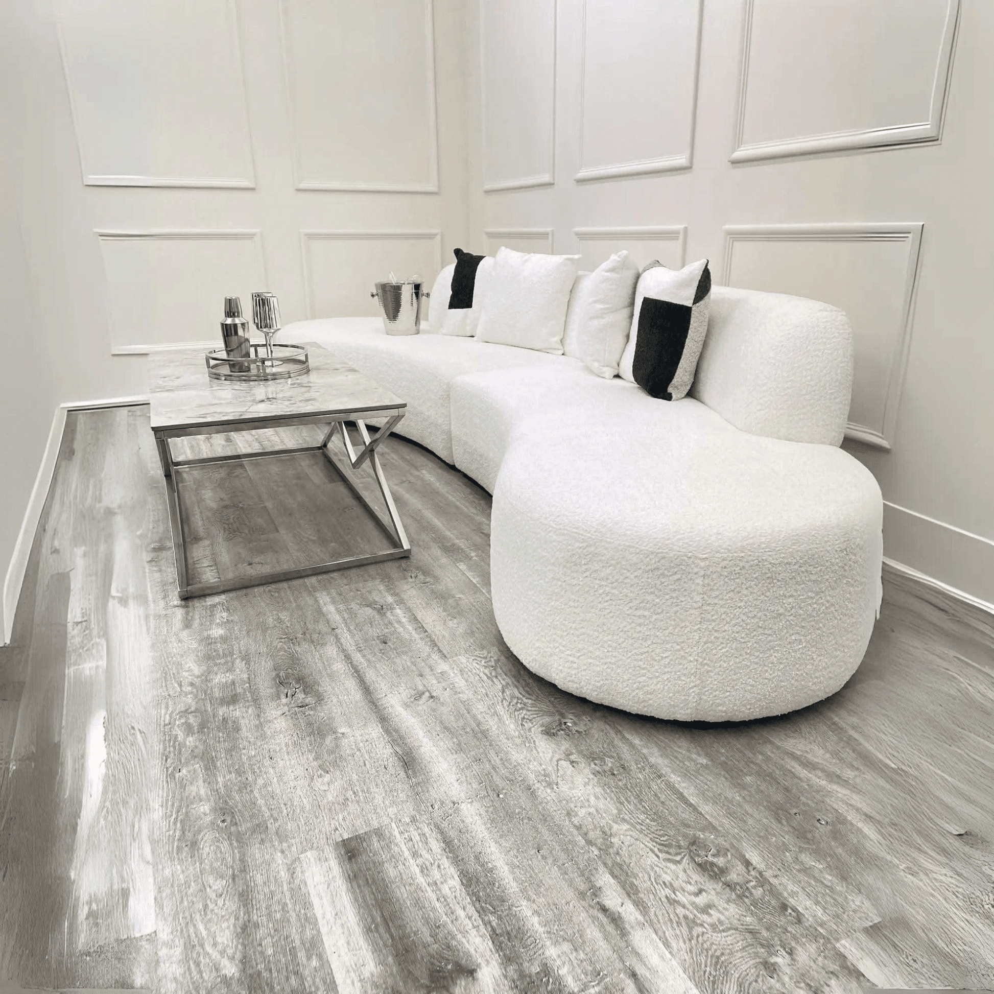 Looking to add a bold, designer touch to your living space? The Miami Curved Cinema Boucle Sofa is the perfect blend of style, comfort, and sophistication. With its sculptural silhouette and ultra-soft boucle upholstery, this curved sofa is a true statement piece that brings elegance and luxury into any modern home.