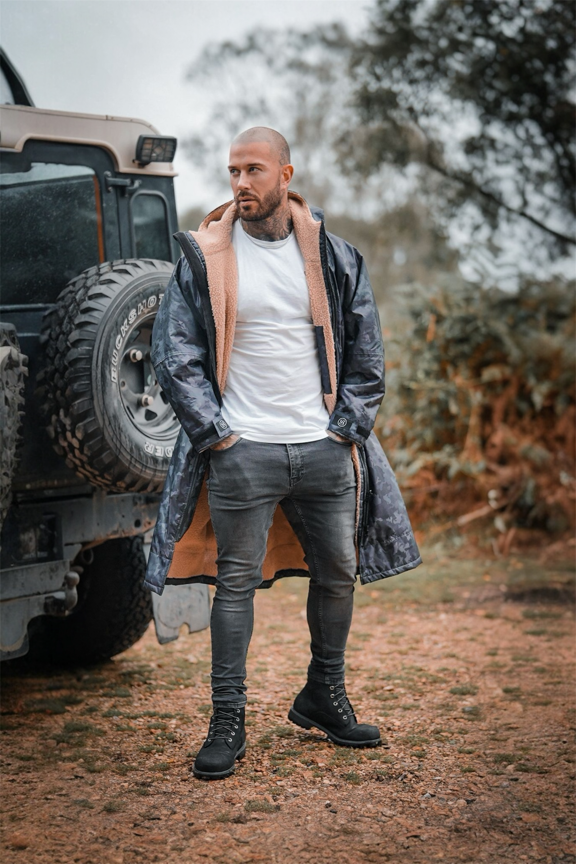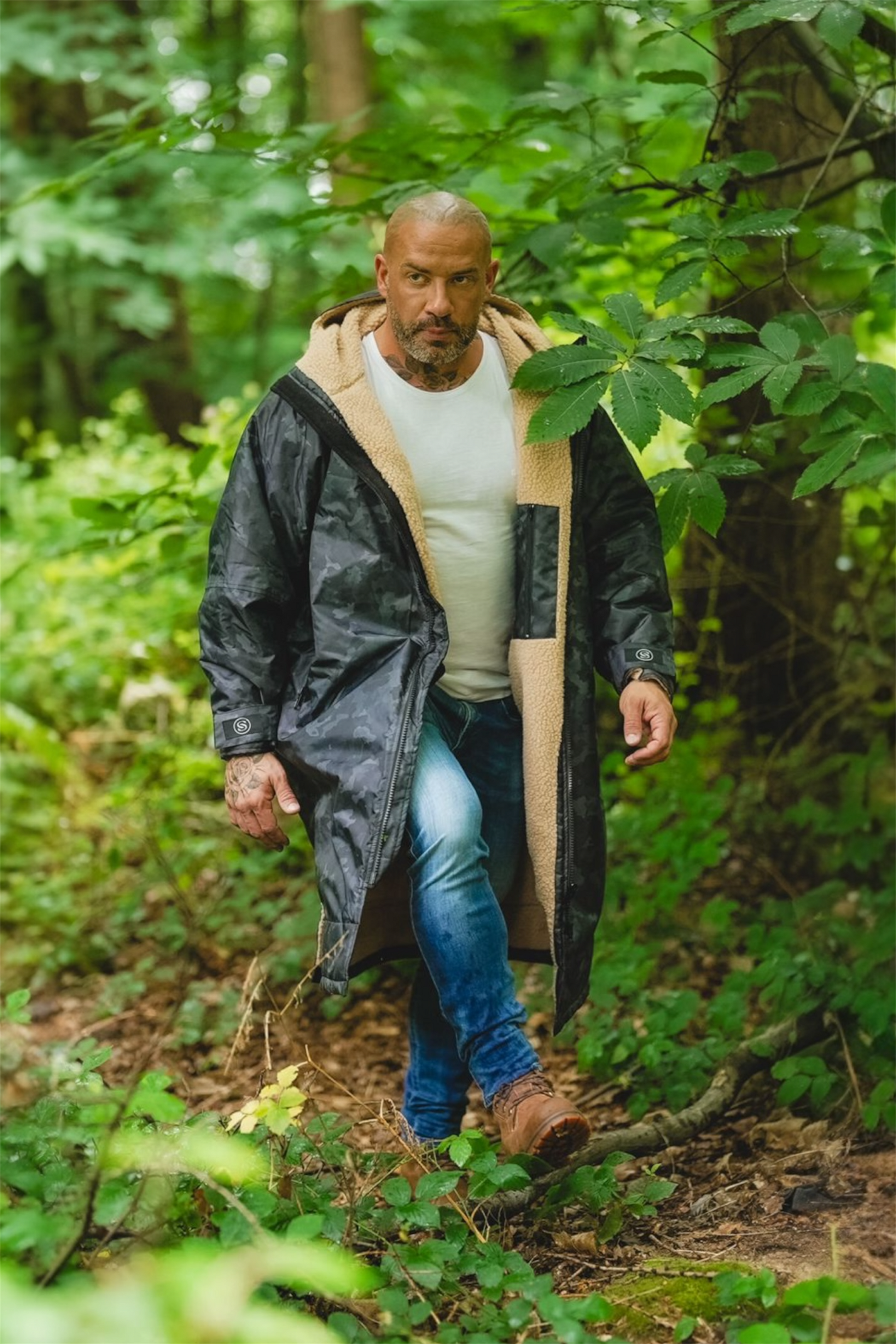 MKII Wear-Anywhere Changing Coat - long sleeve - Black Camo, Beige Liner