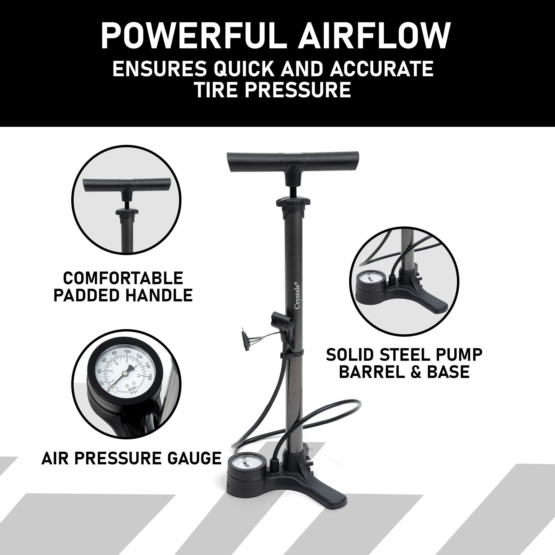 - Accurate Pressure Gauge: Real-time pressure monitoring prevents over-inflation and ensures optimal tire pressure.
