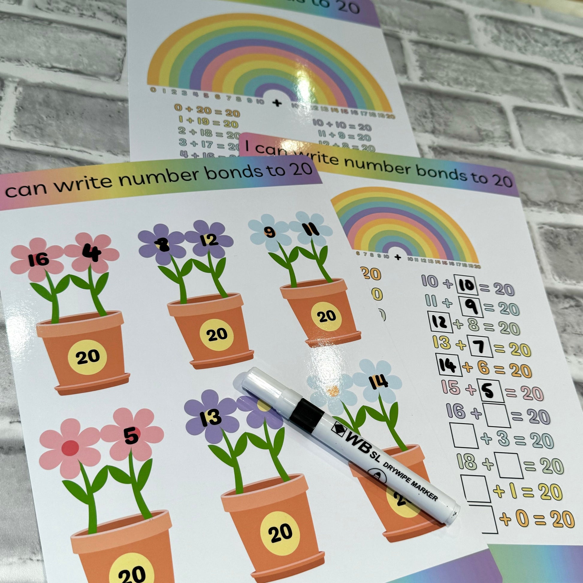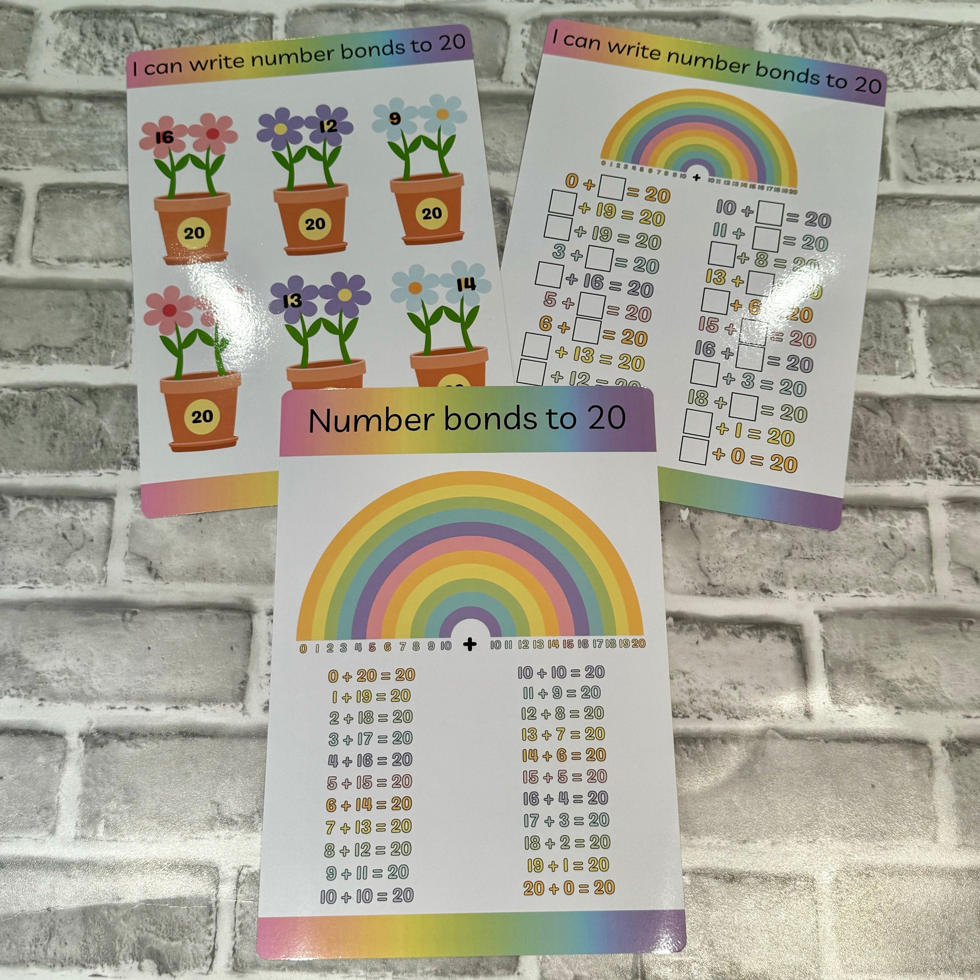 Welcome to 'Number Bonds to 20', the perfect tool to help your children learn and apply their knowledge of number bonds. This fantastic product includes three durable mats, specifically designed for the purpose of teaching number bonds up to 20.