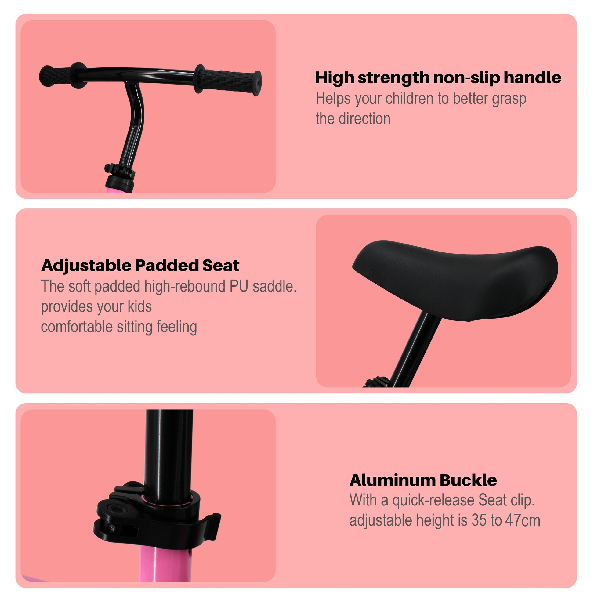 - First Bike to Kids - Different from regular bikes, there are no pedals and training wheels. It helps your child develop the necessary balance and coordination skills, enhance physical flexibility and skill, and develop a positive, confident, and determined character. It will be a good choice as a gift for kids.