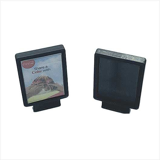 A pack of two high quality, 3D printed street advertising billboards in OO | 1:76 scale. Billboards are supplied unpainted and printed in black ABS-like resin.