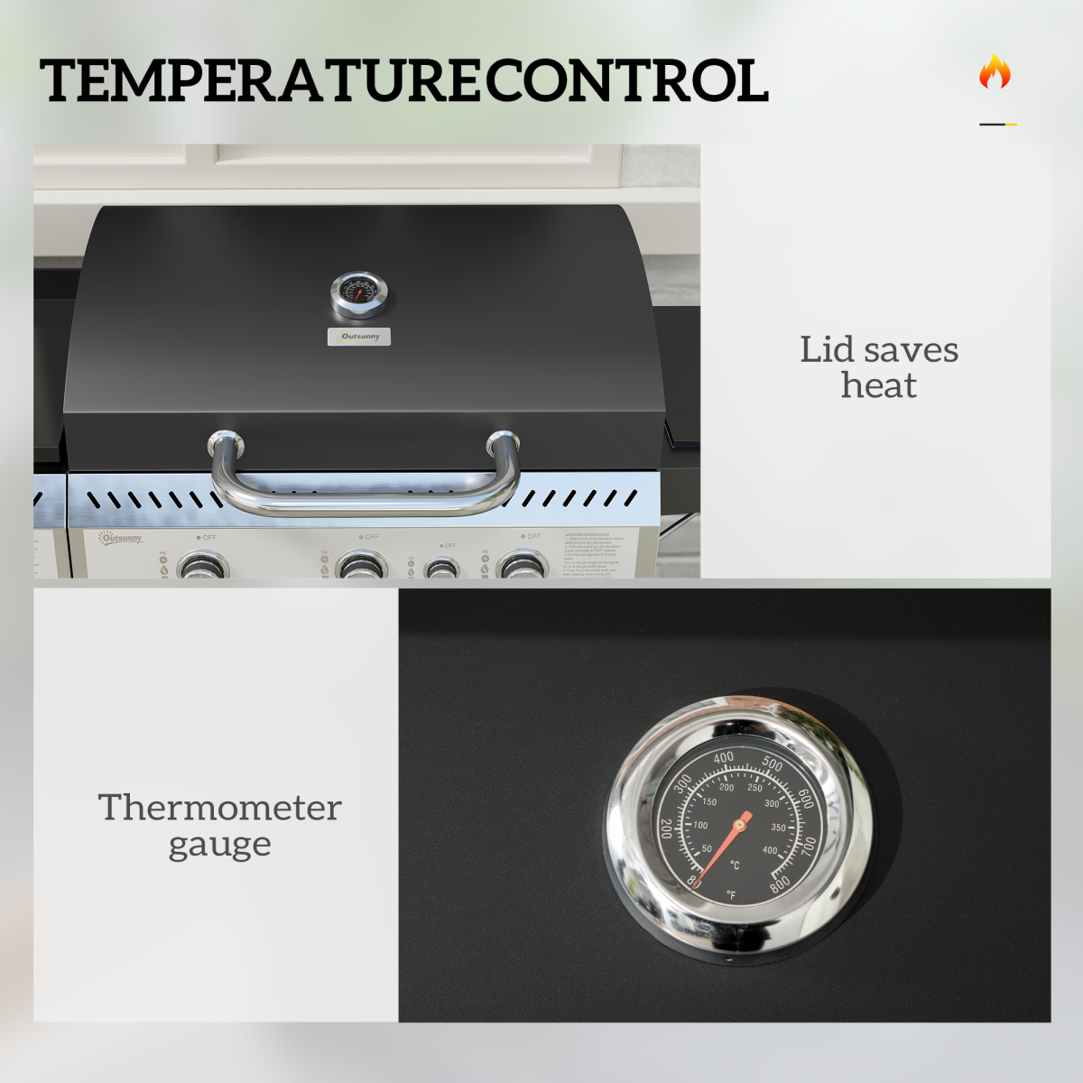 ● Lid to control smokiness, with built-in thermometer