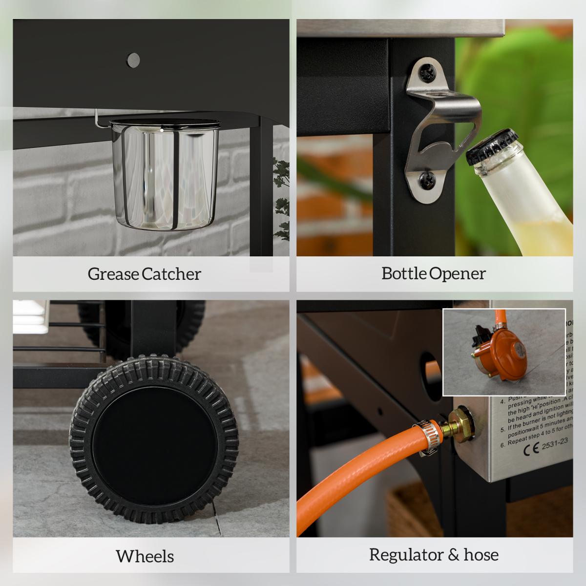 ● Assembly is required. Regulator and hose are included and pre-installed