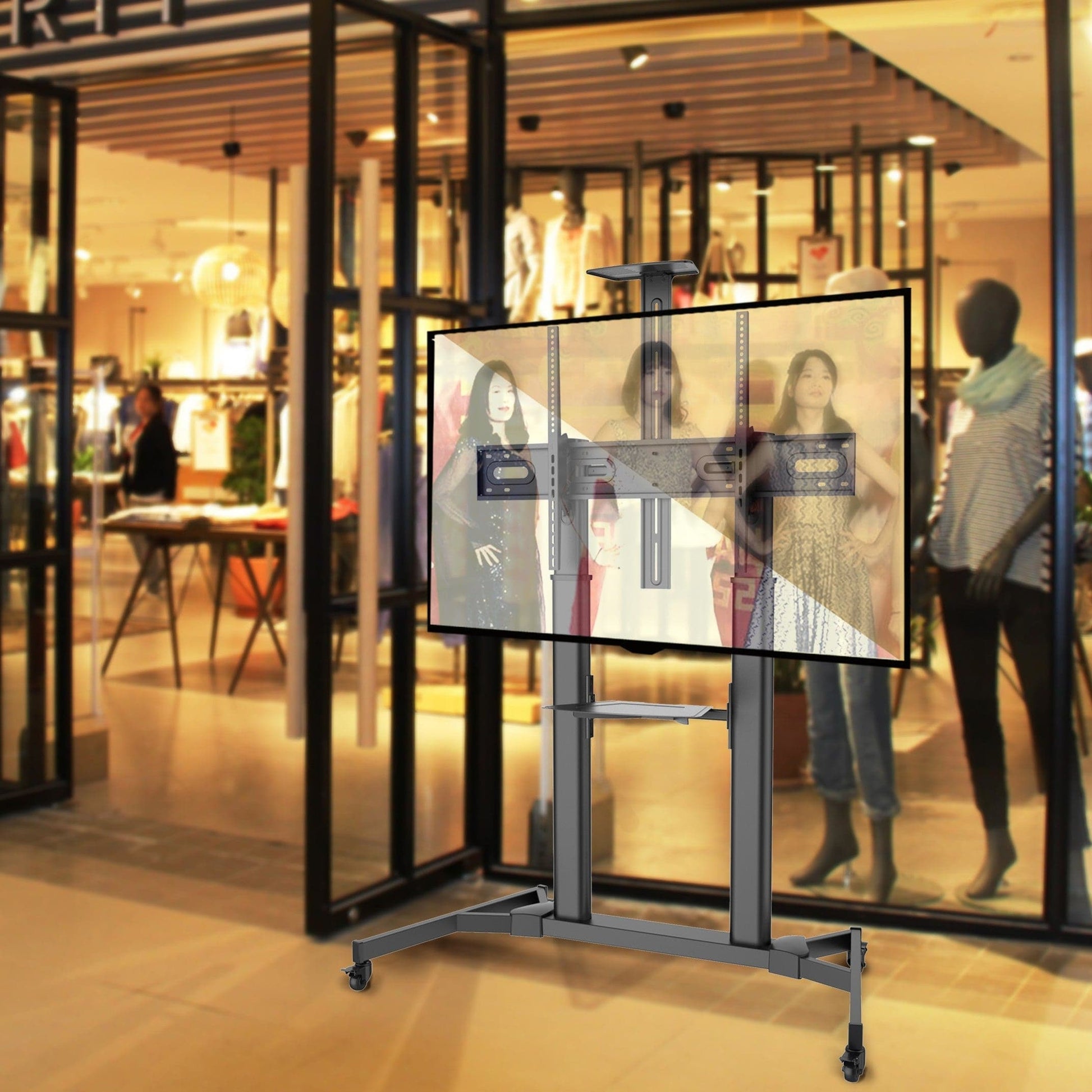 ProperAV Mobile TV Trolley Stand on Wheels for 60" - 100" Screens (100kg Capacity / VESA Max. 600x1000)
