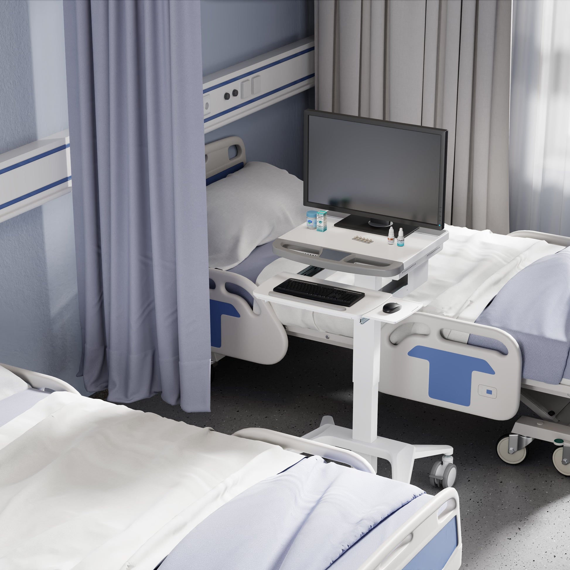 The ProperAV Mobile Workstation Trolley Cart is a versatile, professional-grade workstation designed for dynamic environments where mobility, flexibility, and reliability are essential. Whether in a hospital, warehouse, school, airport, train station, clinic or office, this height-adjustable cart provides a sturdy and ergonomic solution for everyday tasks.