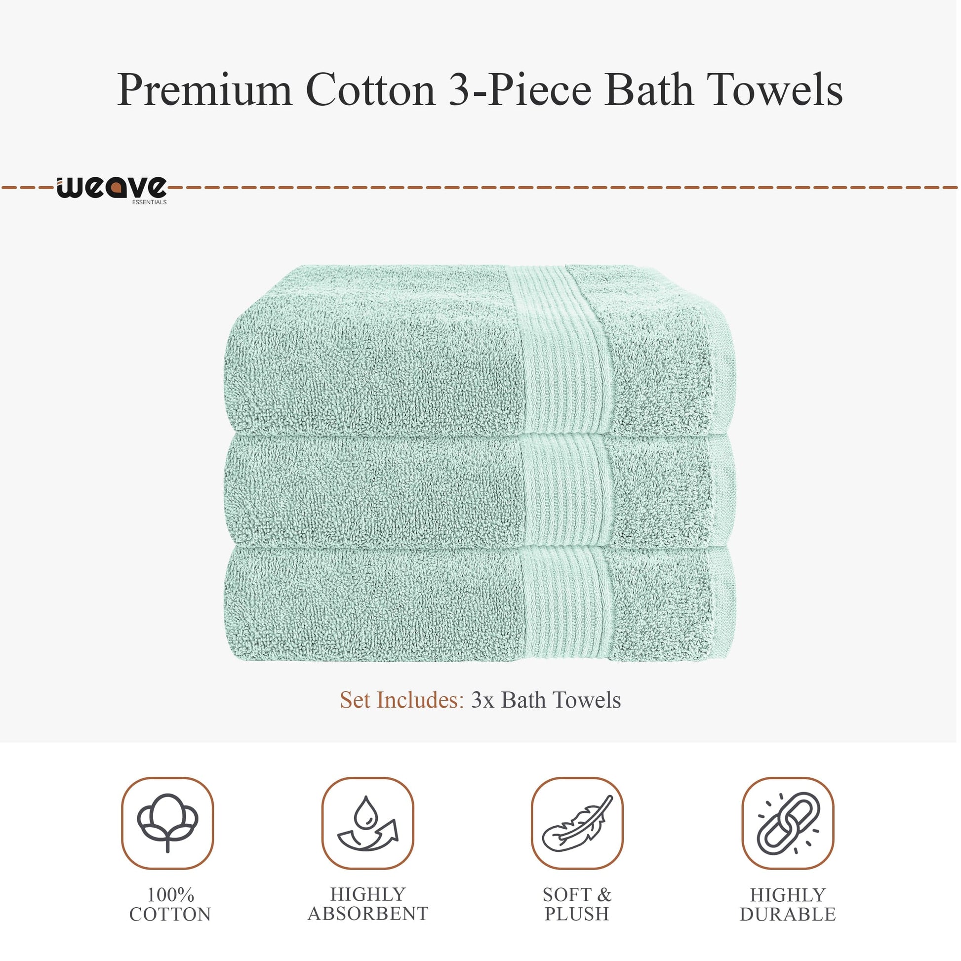 - 3-Pack Bath Towels: Each measuring 70 x 125 cm – ideal for daily bathing and showers.
