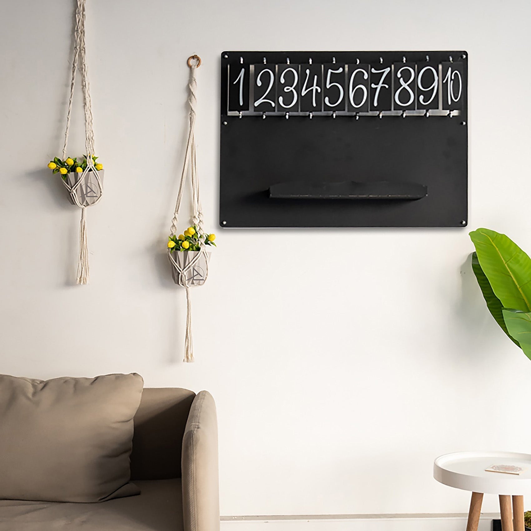 You will need two screws and wall plugs to hang the board. We wanted to inform you that we do not include hardware with the product, as our customers may require different types of screws or nails to securely hang it on the wall. -